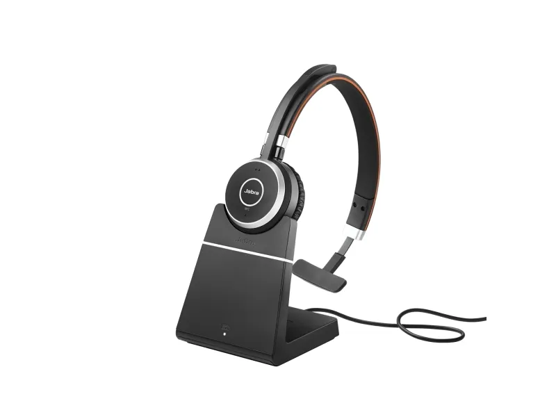 Jabra Evolve 65 SE UC Mono - Hodesett - on-ear - Bluetooth - trådløs - USB - med ladestativ - Optimert for UC