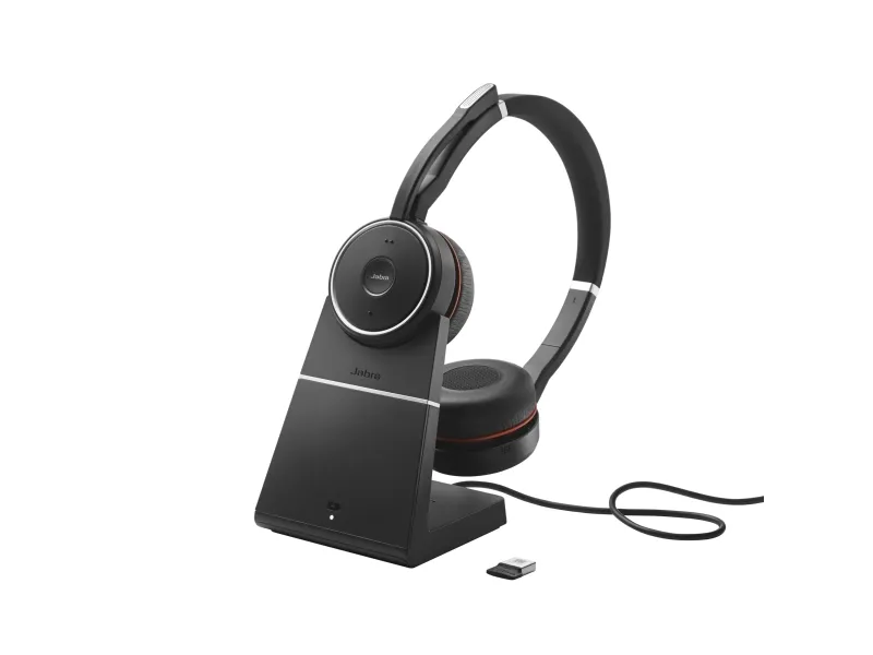 Jabra Evolve 75 SE UC Stereo - Hodesett - on-ear - Bluetooth - trådløs - aktiv støydemping - USB - med ladestativ - Zoom Certified - for LINK 380a MS