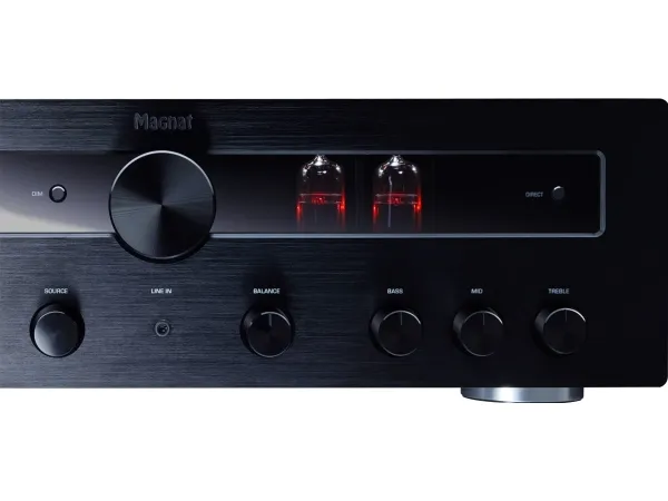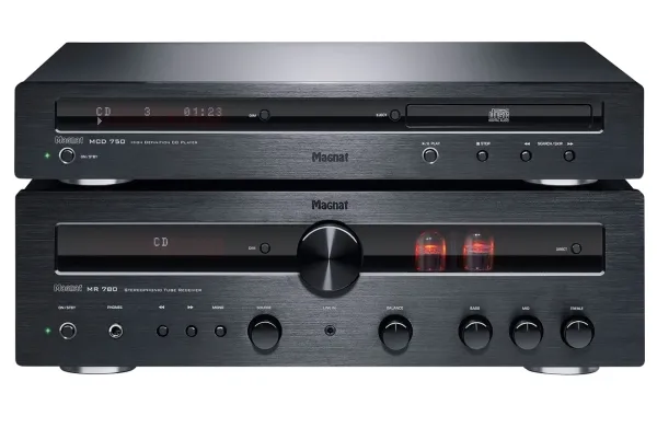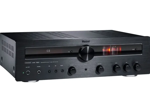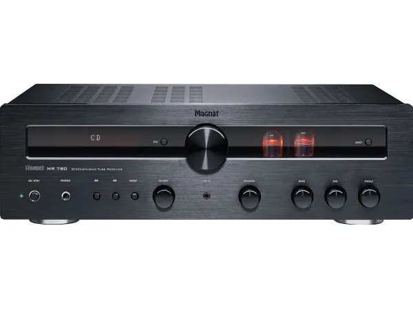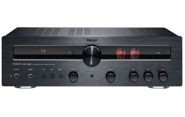 High-end hybrid valve receiver with powerful output stage and Bluetooth® aptX™ The Magnat MR 780 combines elegantly audiophile hi-fi sound with substantial power reserves: Used in the pre-amp stage are high-quality selected and extensively burnt-in ECC 81 valves, ensuring that well-loved, warm sound. The output stage relies on a low-emission toroidal transformer and provides an impressive 100 watts of RMS power per channel at 4 ohms. Added to this is a virtually overwhelming range of connection options for analogue and digital sources, including Bluetooth aptX. Where necessary, a high-quality Wolfson D/A converter takes care of the signal transformation with up to 192 kHz and 24 bits. A phono pre-amplifier for MM systems, an integrated DAB/DAB+ tuner as well as an FM receiver and a large number of further details make the MR 780 one of the best stereo receivers in this price category. This high standard is clear from the very first glimpse. You can see immediately from the full-metal enclosure with its solid, brushed aluminium front panel that this unit belongs in the high-end range.