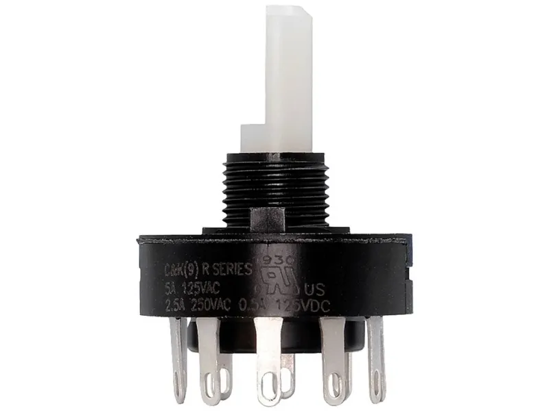 C & K COMPONENTS R20307RR01Q Rotary Switch, 3 Positions, DP3T, Latched, 0.5A, 125VDC, Solder Terminal, Flat Type Actuator, Panel Mount-threaded