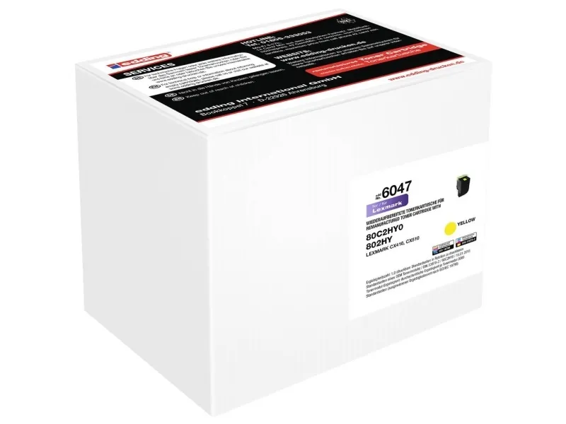 Edding toner EDD-6047 erstatter Lexmark 80C2HY0 / 802HY - gul - 3.000 sider Erstatter Lexmark 80C2HY0 / 802HY · Edding kvalitet - 100% kompatibel med mindst samme sidekapacitet · Edding kvalitet - 100% kompatibel med mindst samme sidekapacitet · Overbevisende pris-ydelsesforhold ved gennemprøvet Edding kvalitet · Edding service-hotline og service på stedet med kvalificerede printerteknikere · Genbrugte tonerpatroner skåner miljøet og sparer CO2. Edding toner EDD-6047 erstatter Lexmark 80C2HY0 / 802HYIndstil også Edding-kvaliteten ved udskrivning!Pålidelig udskriftskvalitet og problemfri funktion til en attraktiv pris - Edding giver printertilbehør et førsteklasses sortiment af printerpatroner og genbrugte tonerpatroner til et overbevisende pris-ydelsesforhold.Produkterne fra Edding opfylder eller overgår de højeste kvalitetsstandarder for alternativt printertilbehør - sådan bliver for eksempel næsten alle Edding tonerpatroner udviklet i henhold til de nyeste din-fatninger, 33870-1 eller 33870-2.Kompatibel med følgende printermodeller:Lexmark CX 410 de, CX 410 te, 410 e, CX 510 de, CX 510 dhe, CX 510 dthe.
