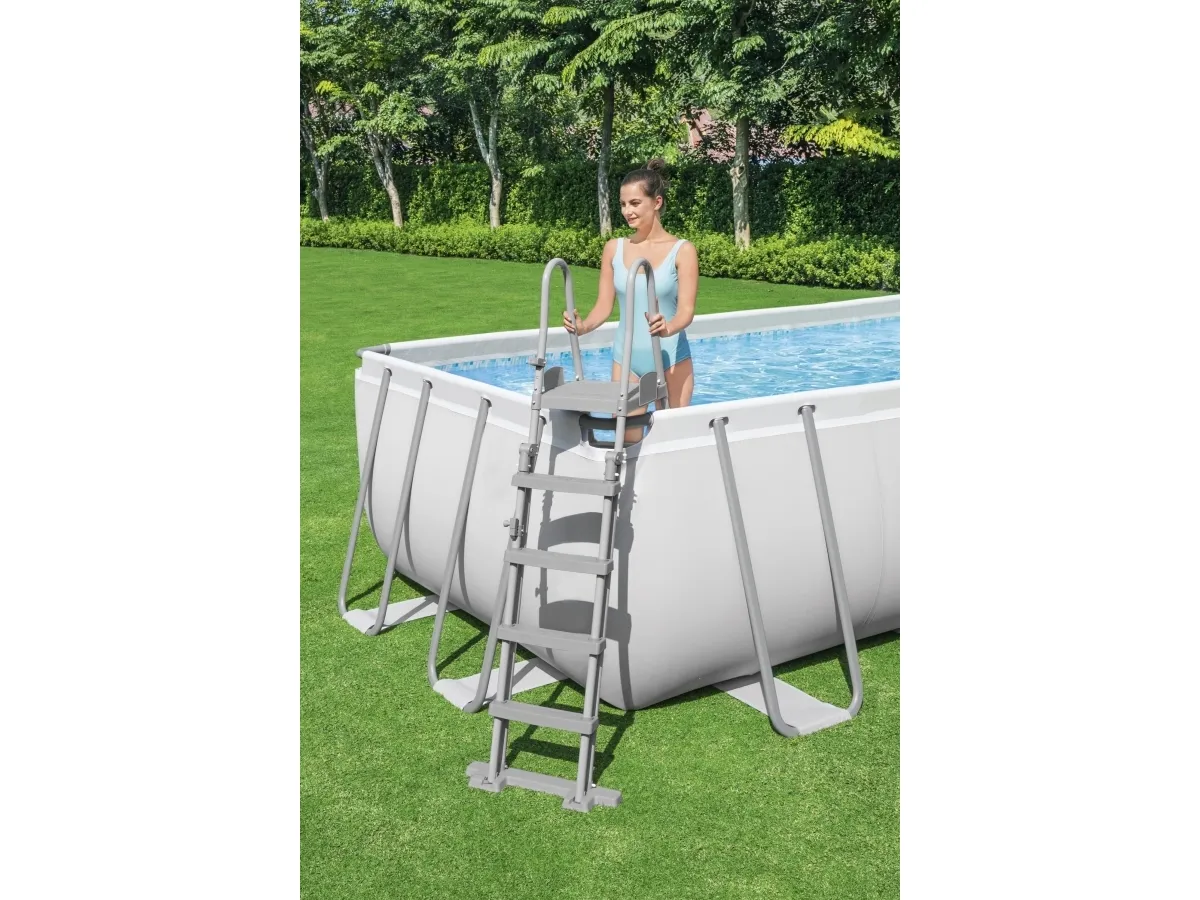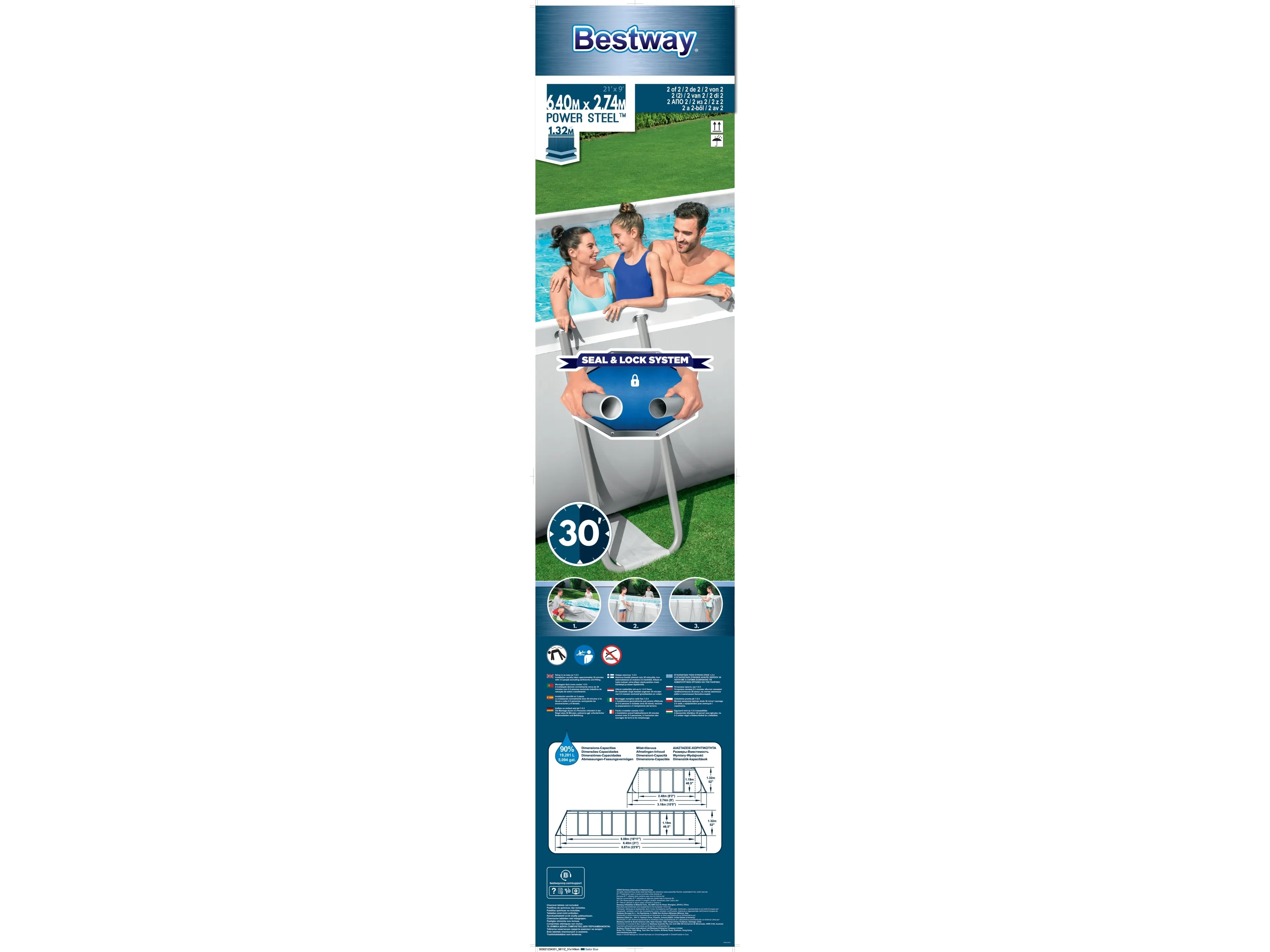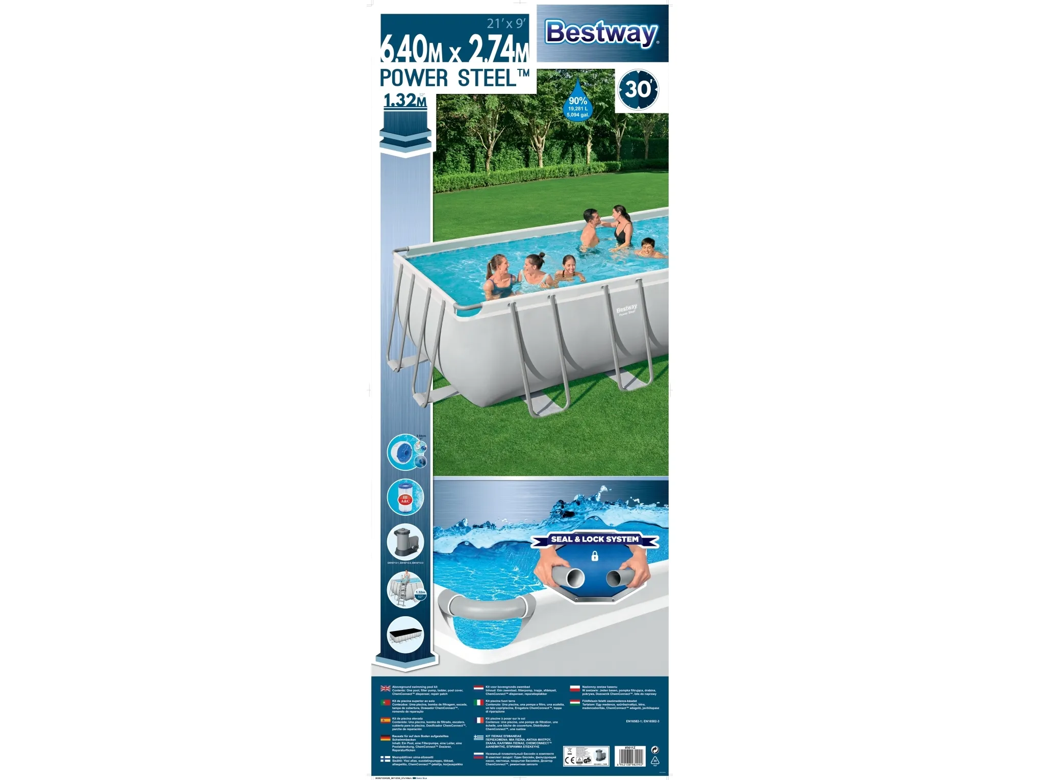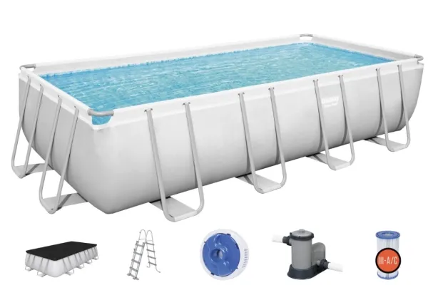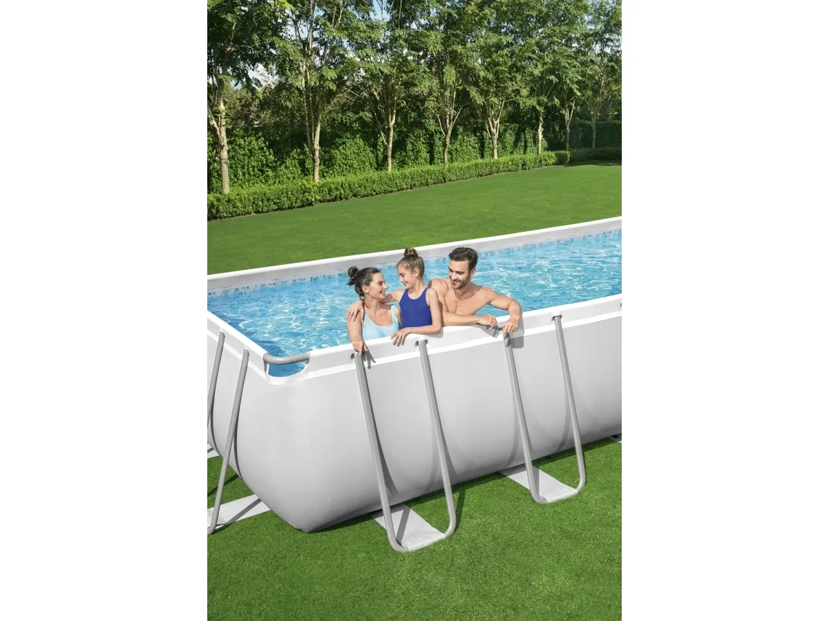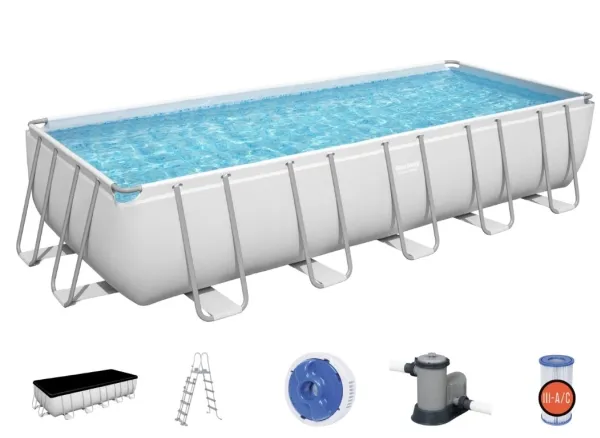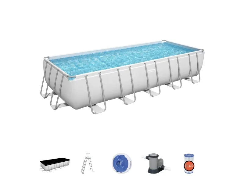 Poolen Power Steel från Bestway är extremt slitstark och robust, men ändå snabb att montera och demontera. Storlek: 640 x 274 x 132 cm. Vattenvolym: 19281 l. Inkl. poolens delar, en pump, en stege, en ChemConnect dispenser och ett poolöverdrag.