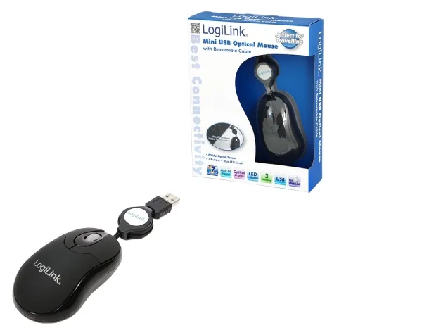 The LogiLink Mini mouse offers a blend of functionality and convenience for users. With a wired USB connection and an integrated retractable cable, this mouse minimizes clutter while providing reliable performance. Its right- and left-handed orientation, along with programmable buttons, cater to diverse user preferences. The rubber coating enhances grip and comfort during prolonged use, ensuring an enjoyable experience whether at home or in the office.