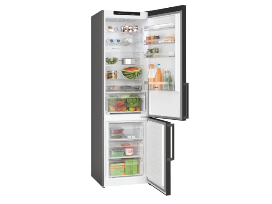 1 x flaskestativ - krom 3 x hylle - høydejusterbart sikkerhetsglass 2 x hylle - sikkerhetsglass 1 x dørlager for flasker 1 x grønnsaksskuff - fuktkontrollert VitaFresh 1 x skuff - VitaFresh