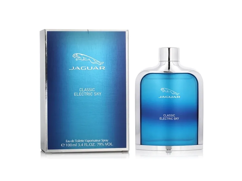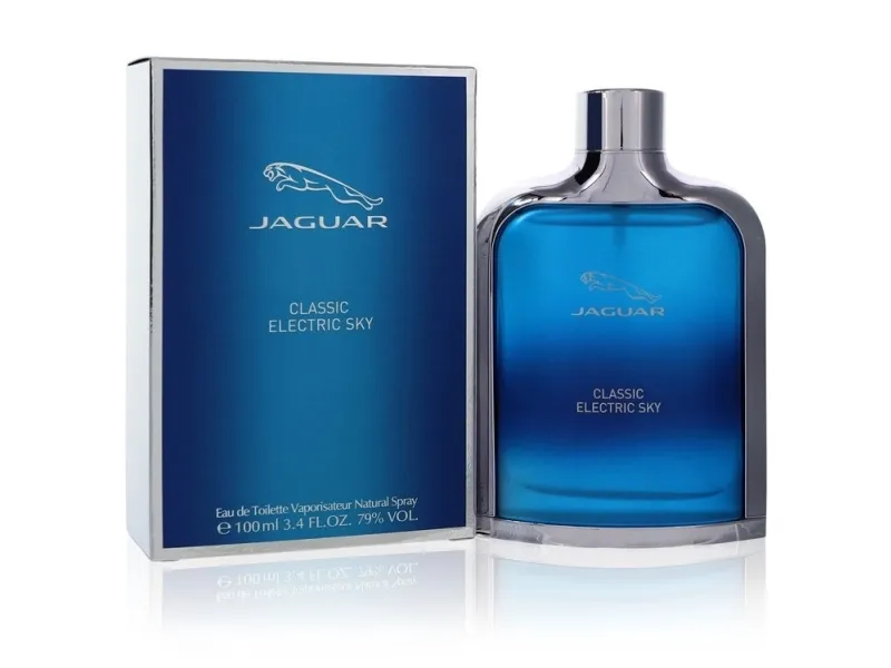 An aromatic fragrance for men Jaguar Classic Electric Sky was designed by perfumer Alexandra Monet and launched by Jaguar in 2020 A sweet and spicy combination of notes opens the fragrance with violet leaf grapefruit and Sichuan pepper Lavender geranium and clary sage notes form a fresh and floral heart