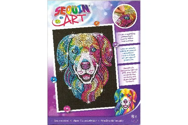 Gavesæt med indhold til pailetbilled. Pakken indeholder pailetter, plade, nåle og mønster
