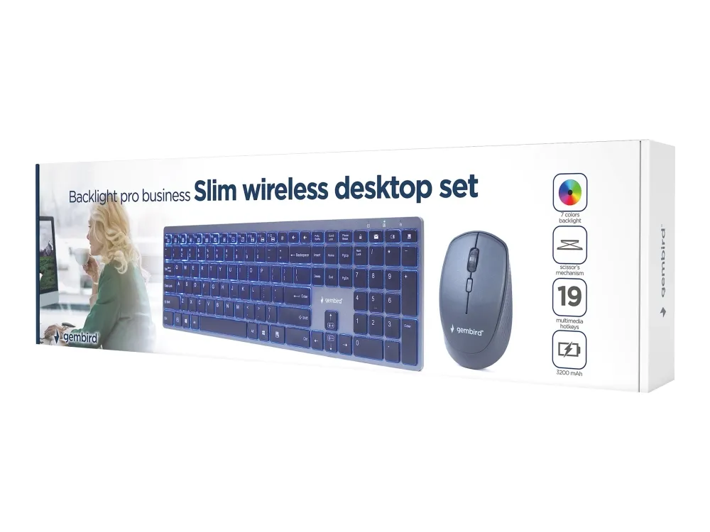 Gembird Backlight Pro Business Slim wireless desktop set - tastatur- og mussett - QWERTY - USA - svart Inn-enhet