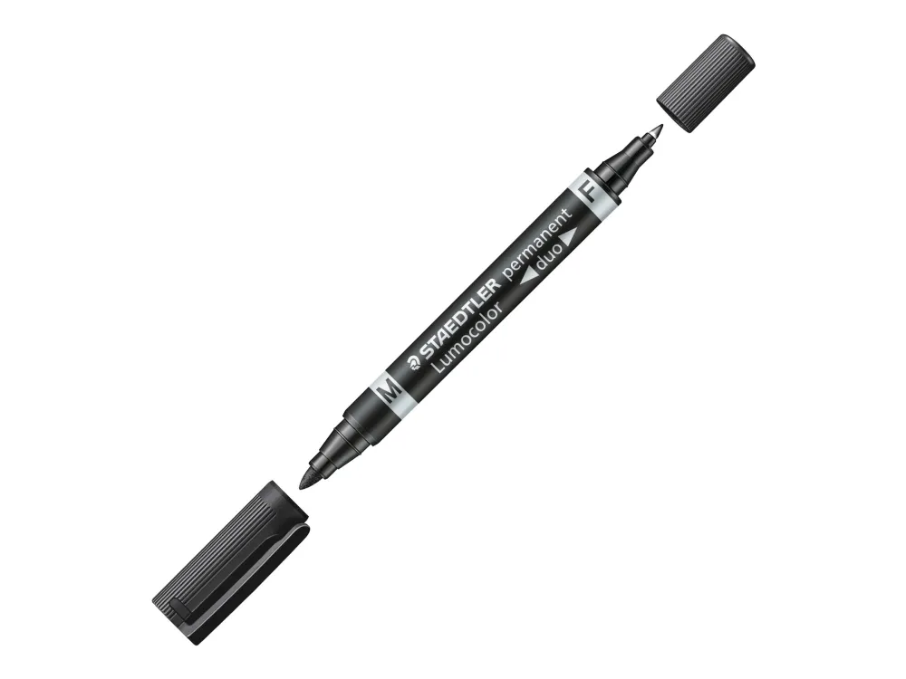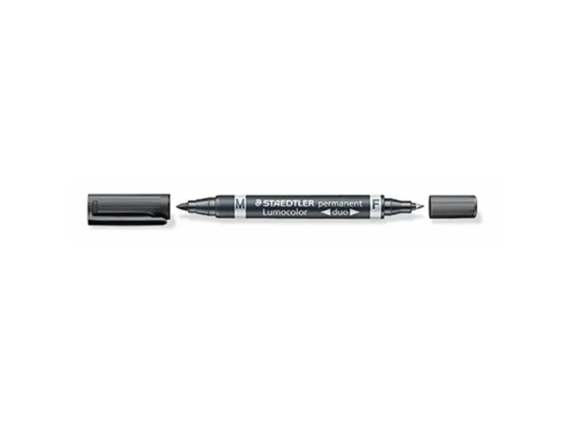 This is a marker featuring both a fine and wide tip - Lumocolor duo writes on each surface, permanent and without drying up. The marker can be left uncapped for days without drying up.