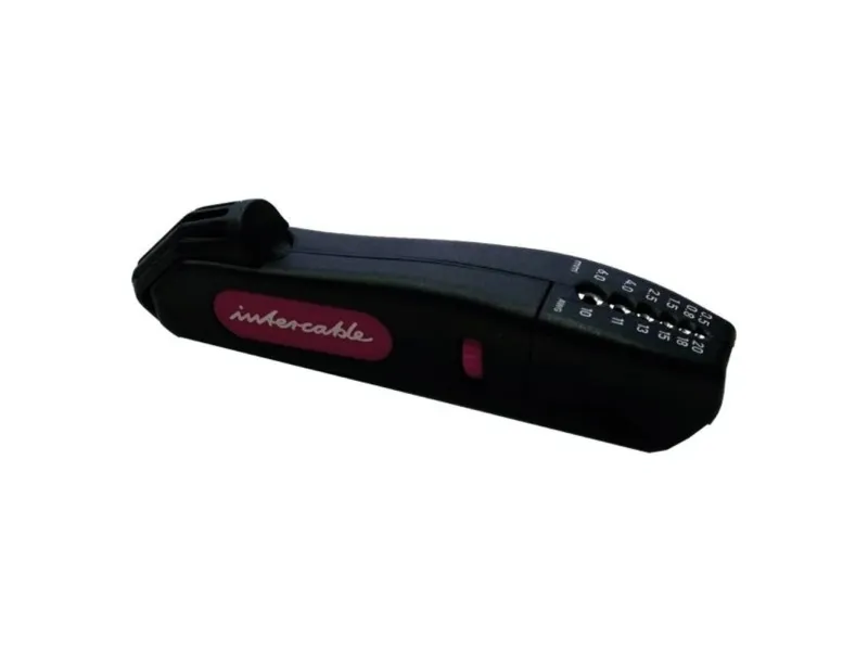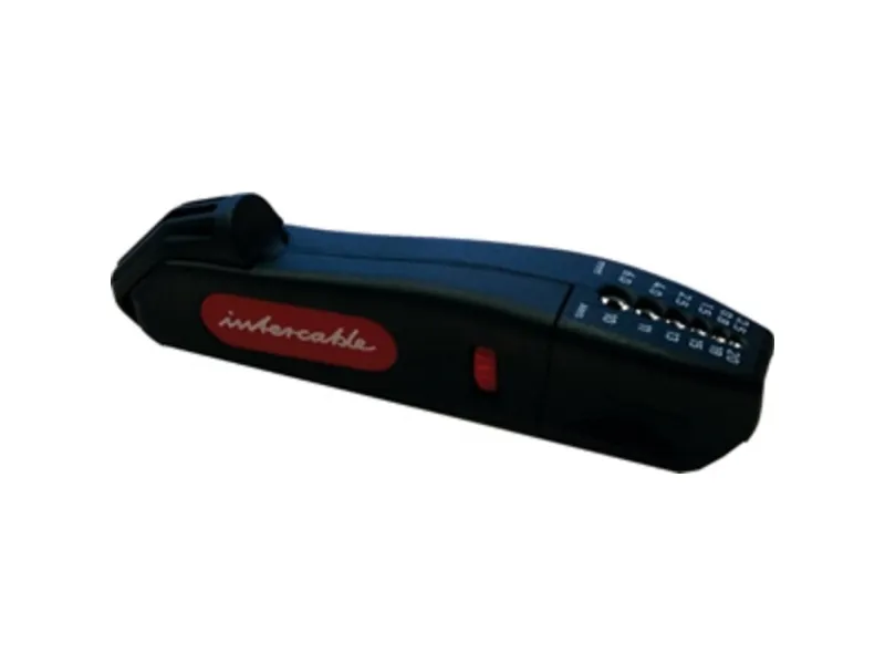 Intercable AV3825 kabelkniv multi f.d=4-28mm og afisolering af 0,5-6mm Kabelkniv AV3825 muliggør en præcis, hurtig og sikker afisolering af alle almindelige rundkabler med en diameter på mellem 4 og 28 millimeter. Ved hjælp af en drejeknap i kabinettet kan skæredybden reguleres trinløst. Dette forhindrer beskadigelse af den indvendige leder. Skærekniv er selvdrejende integreret i kabinettet og muliggør dermed automatisk omstilling fra rund- til langsgående snit. Den ekstra afisoleringsfunktion er anbragt i huset og giver mulighed for afisolering af alle gængse fleksible og massive ledere med et tværsnit på mellem 0,5 og 6 kvadratmeter.