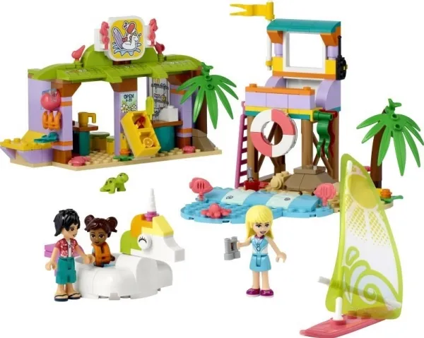 Leker som stimulerer fantasien Barn kan bli med livredder Stephanie fra LEGO Friends på stranden, hvor hun oppholder seg i utkikkstårnet og passer på at alle er trygge. De kan drive surfeskolen, leie ut utstyr til kunder, jakte på store bølger på surfebrettet, utforske havet med snorkel og svømmeføtter eller ha det gøy på stranden med bøtte og spade.