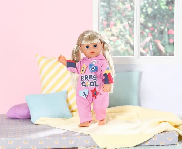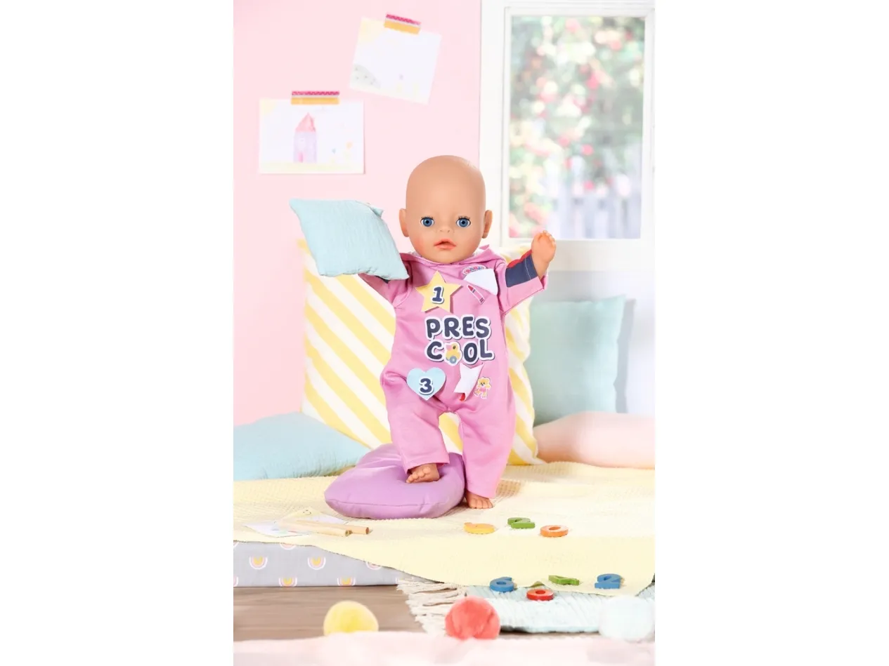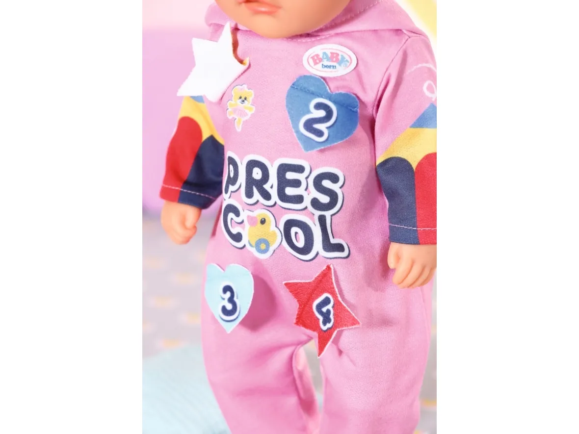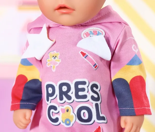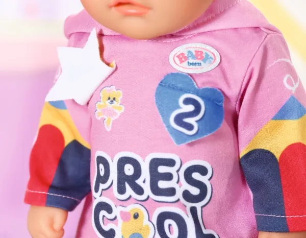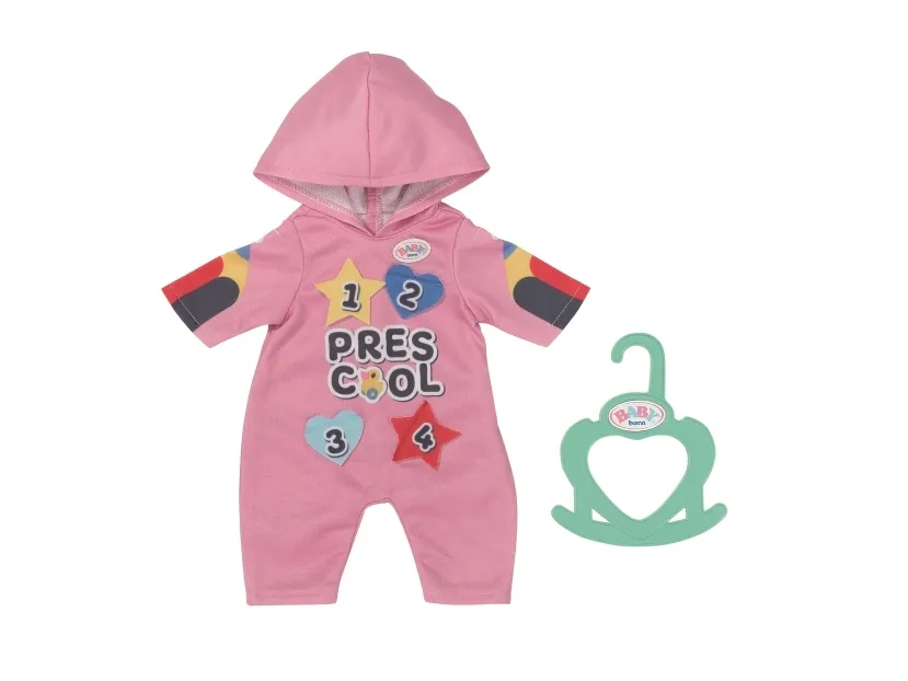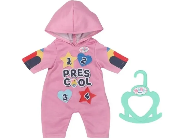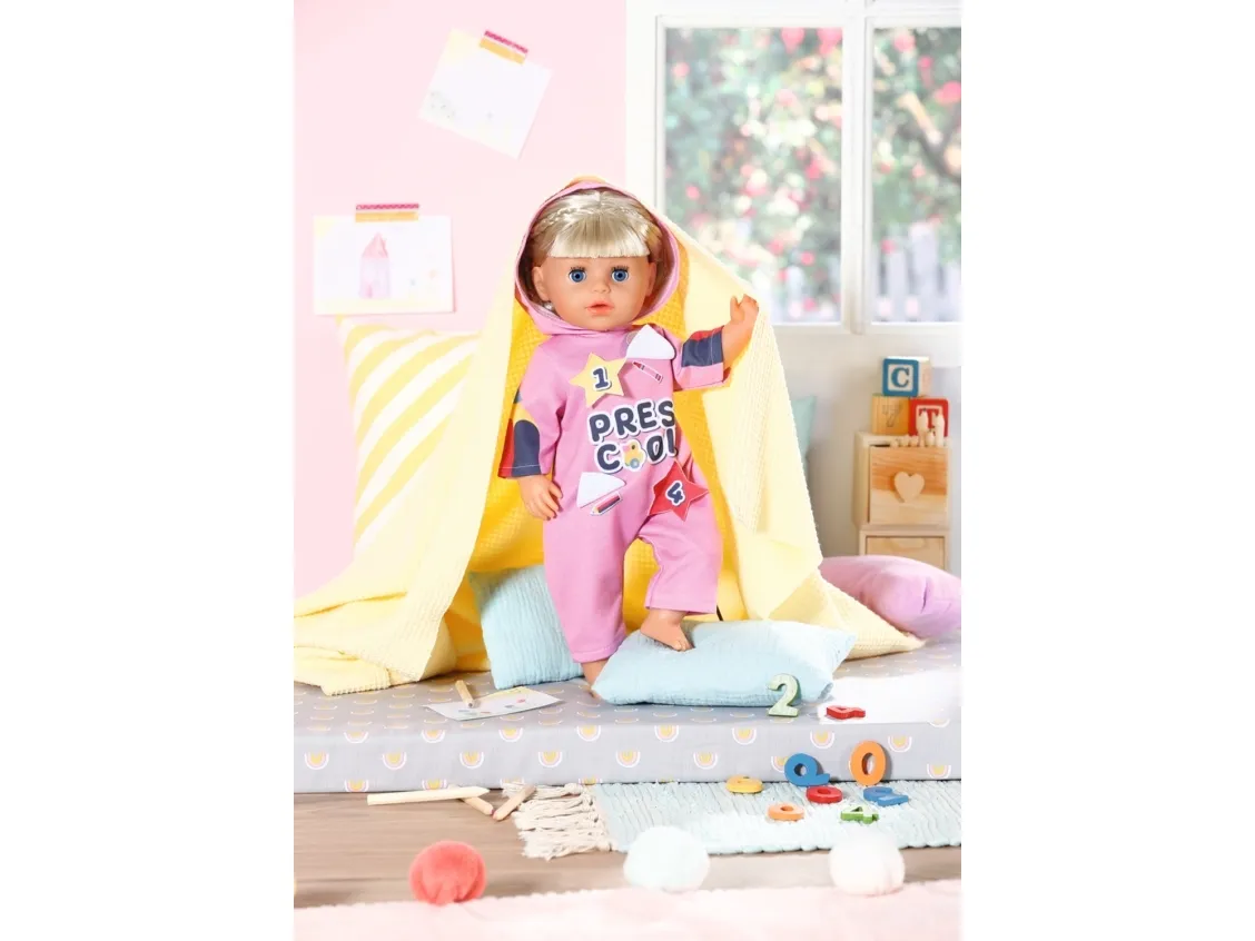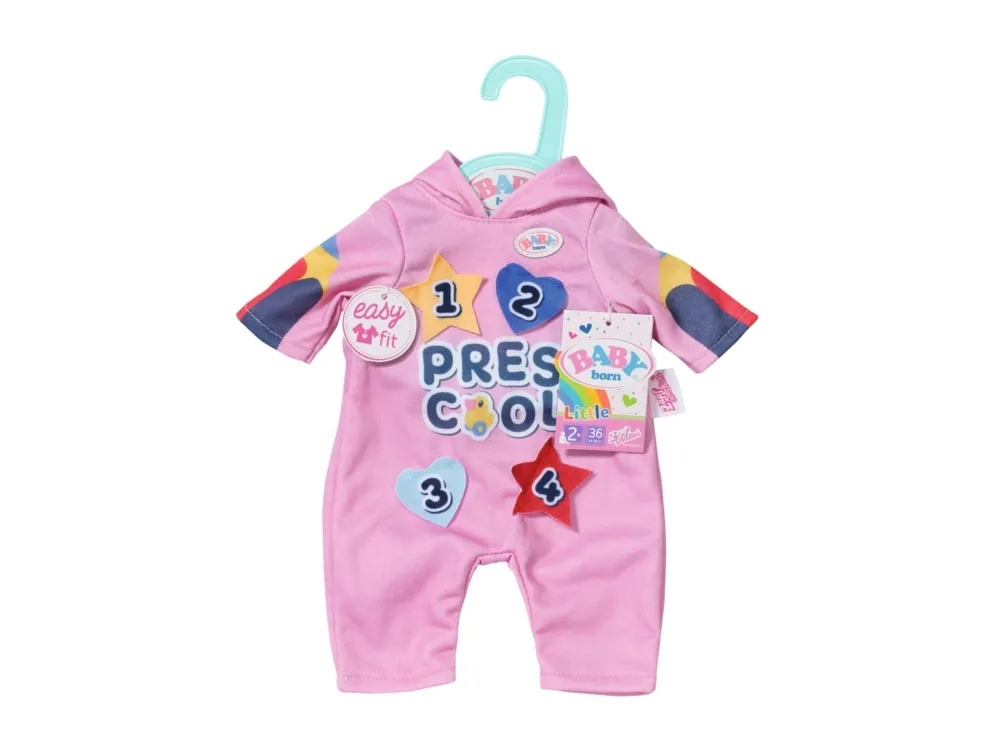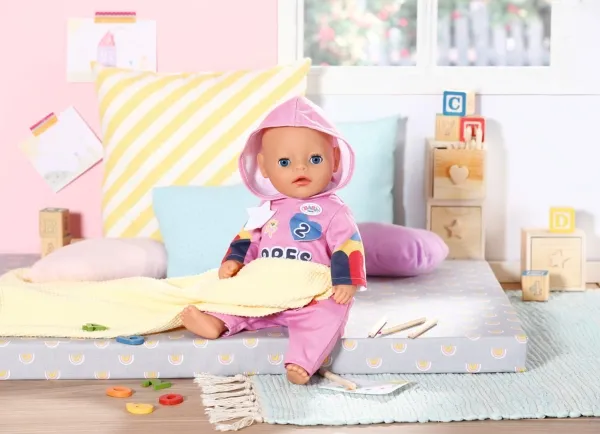 Heldress med morsomme detaljer. Før de legger seg, leker barna i Bjørnestuen gjemsel. Lillesøster har på seg den rosa heldressen med hette på. Den er perfekt for både lek og en liten lur. I begynnelsen løper barna løpsk og gjemmer seg under bordet eller bak stolene. Så blir det litt roligere, og barna oppdager hva som skjuler seg bak emblemene på Søsters heldress. Så lukker de øynene og leker "hvis jeg ikke kan se deg, kan ikke du se meg heller". Og snart har de fleste av dem sovnet. Høykvalitetsklær til BABY born dukken. For forbedret, mangfoldig og langvarig moro gjennom lek. Designet med enkel passform gjør det enkelt å kle av og på dukken. Passer alle BABY born dukker på 36 cm. Fra 3 år. Inkluderer: - BABY born barnehage sparkedrakt med emblemer 36 cm