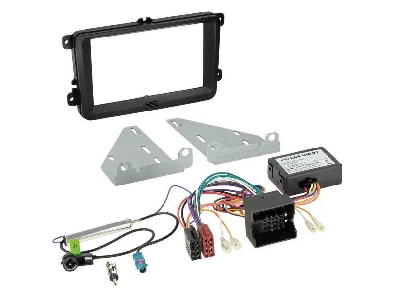 2-din kit 1 Seat/Skoda/VW diverse køretøjer CAN Bus sort Radioblænde 2-din og radiotilslutningssættet Seat/Skoda/VW kan montere mange bilproducenter af egne køretøjsspecifikke radioer, som er optisk tilpasset til midterkonsollen. Indbygningskits indeholder alle komponenter til udskiftning af et OEM-apparat. Afhængigt af køretøjets udstyr medfølger alle adaptere og grænseflader, der er nødvendige for at kunne køre eftermonteringsenheden og genoprette køretøjets funktioner. Vær opmærksom på indbygningsanbefalingerne for de enkelte komponenter. I nogle tilfælde er det ikke alle køretøjsfunktioner, der understøttes. For eksempel trailere Assist, E Call eller andre køreassistentsystemer. Kontroller køretøjets menu på diverse indstillinger før installation. Kontroller indstillingerne før den endelige montering. Kontroller, om adapterens originale fabriksradioer og viste stik stemmer overens med køretøjets udstyr. Vores support-team hjælper dig gerne med at vælge. 02431-9645-96 [email protected] Bemærk: CAN BUS tilslutning: 40 PIN Quadlock VW tilslutning: Fakra(m) / din/ISO udgange kan belastes op til 1 A VW køretøjer T5 med soundsystem adapter VW T5/Touareg Quadlock Mlock QS-indsats: 13-1424-26 egnet til følgende køretøjer: Seat Seat Seat Alhambra (7N) 10/2010 - 2015 Seat Leon (1P/1PN Facelift) 03/2009 - 10/2012Seat Toledo (kg) 03/2013 - 2016 Skoda Skoda Fabia (5J) 03/2007 - 06/2014Skoda Octavia II (1Z Facelift) 01/2009 - 02/2013Skoda Rapid (NH) 10/2012 - 2015*Skoda Roomster (5J) 09/2006 - 2015Skoda Praktik (5J) 04/2007 - 04/2015 Skoda Superb (3T4) 07/2008 -2015**Skoda Superb (3T5) 01/2010 - 2015**Skoda Yeti (5L) 08/2009 - 2014 16 16****Amarok (2H) 03/2010 16 - VW BEN5L) 11/2011 - VW BE611/2011 - VW BE6M (VW BE6M (VW BANC) 11/2012-2016VW CADDY (2K/2KN) 10/2003 - 2014VW CARAVELLE 09/2009 - 2015 VW CC (3CC) 02/2012 - 2016VW EOS (1F) 05/2006 - 2012VW GOLF V (1K) 11/2003 - 09/2008VW GOLF V (1 KM) 06/2007 - 10/2009VW GOLF V PLUS (1KP) 01/2005 - 02/2009VW GOLF VI (1K) 11/2008 - 12/2012VW GOLF VI. (1 KM) 11/2009 - 04/2013VW Golf vi (1K) 06/2011 - 2013VW Golf vi Plus (1KP) 03/2009 - 01/2014VW Jetta V (1 KM) 09/2005 - 10/2010VW Jetta vi (16) 01/2011 - 2015VW Multivan 09/2009 - 2015 VW Passat B6 (3C2) 11/2005 - 07 362/VW Passat B6 (08/2005 11/2010 - 07/VW Passat 10/2014VW Passat B7 (3C/365) 11/2010 – 10/2014VW Passat B7 (3C/365) 01/2012 – 10/2014VW Passat CC (3C/3CC) 05/2008 – 01/2012VW Polo (6R) 06/2009 – 03/2014VW Scirocco III (13) 08/2008 02/2003 – 2014VW Sharan II (7N) 09/2010 09/2009 – 2014Tiguan (5N) 09/2007 – VW TYVTV TYLY VW TYLY VW TYLY VW TYLY VW TYLY VW TYLY VW TYLY (VW TYLY VW TYLY - 2015Farve: Sort indbygningsudsnit radiodisplay: 172mm x 98,5 mm følgende signaler stilles til rådighed: TændingbelysningSpeedPulse aktivering OEM soundsystem (Seat, Skoda