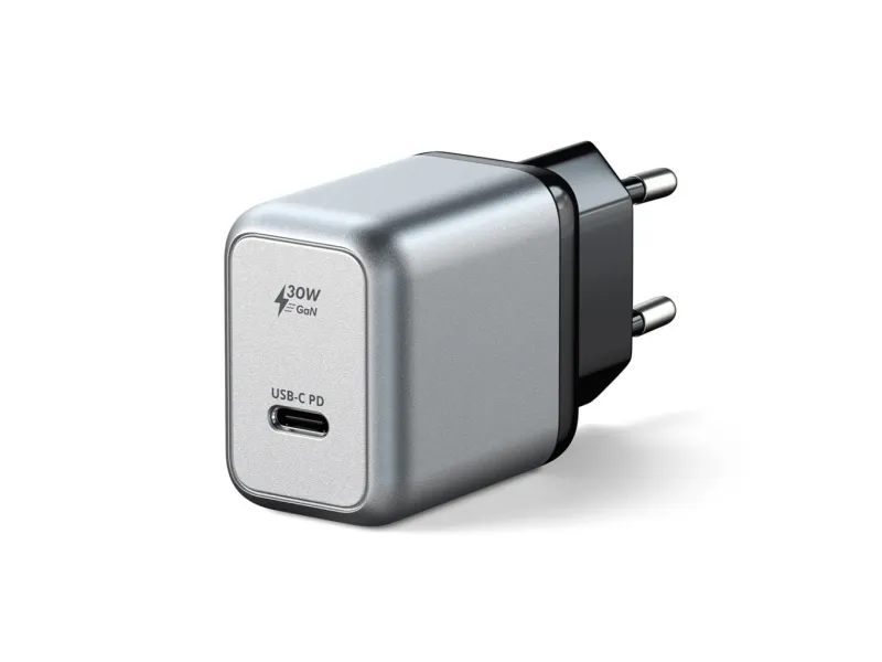 Experience next-generation charging with the Satechi 30W USB-C PD GaN wall charger. Fitted with remarkable gallium nitride technology this compact charger delivers a faster more efficient charge for your devices. Charge your MacBook Air iPhone or even your Nintendo Switch within minutes from anywhere you are. Ultra-compact design Advanced USB C 30W Power Delivery Stylish aluminium design Rapid charging with up to 3x faster speed Utilizes breakthrough GaN technology Ultra Compact Design Satechi 30W USB-C PD GaN Wall Charger boasts a slim and compact design that is easy to carry around. Its compact size made possible by upgraded GaN technology is more compact than its original counterparts. Advanced USB-C 30W Power Delivery Equipped with a USB-C Power Delivery port the Satechi 30W PD GaN Wall Charger comes loaded with 30W of output power. This feature facilitates an efficient charge for your 2020 MacBook Air at full speed. Stylish Aluminum Design Beyond its functional attributes the Satechi 30W PD GaN Wall Charger is encased in a sophisticated aluminium design that is both durable and aesthetically pleasing. Rapid Charging with Up to 3x Faster Speed Experience the power of rapid charging three times faster than standard 5W chargers. Enjoy a noticeably quicker charging process whether it?s an iPhone 13 series iPad Pro M1 or other Android devices. Utilizes Breakthrough GaN Technology Step into the future of charging with the next-gen gallium nitride (GaN) technology that replaces previous silicon material providing faster and more efficient charging. This upgraded technology enables fewer components to be used enhancing the overall charging process. Package includes Satechi 30W USB-C PD GaN Wall Charger User manual Product Specifications Power Output: 30W Technology: Gallium nitride (GaN) Compatible Devices: MacBook Air: M2(15"&13" 2023 2022) M1(2020) Retina(13" 2020 & 2018-2019) | iPad Pro: 12.9"(6th-1st gen) & 11"(4th-1st gen) | iPad Air: (5th&4th gen) | iPad: (10th gen) | iPad Mini: (7th gen)(6th gen) | iPhone: 16 Pro 16 Pro Max 16 16 Plus 15 Pro 15 Pro Max 15 15 Plus 14 Pro 14 Pro Max 14 14 Plus 13 series (Pro Pro Max Mini 13) SE (3rd gen) 12 series (Pro Pro Max Mini 12) 11 series (Pro Pro Max 11) SE (2nd gen) XS series (XS XS Max XR) X | Apple Watch: Series (10 to 1) SE Ultra 1-2 | AirPods: Pro (2nd&1st gen) 3rd gen with MagSafe and Lightning charging case with wireless charging case (2nd gen) Max 1st gen Wireless Charging Case. Design Material: Aluminum Charger Type: USB-C PD Wall Charger