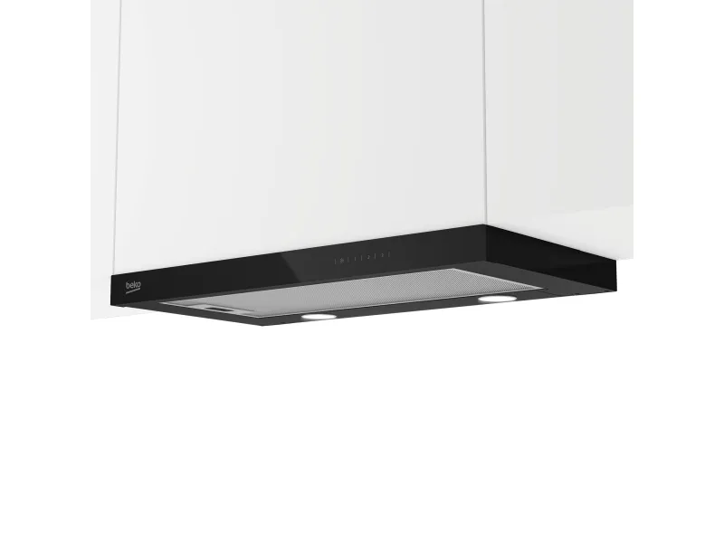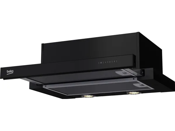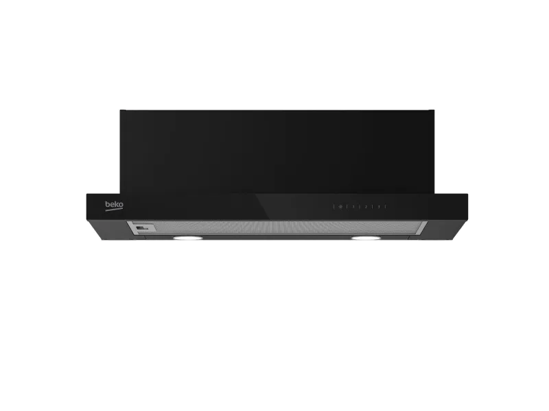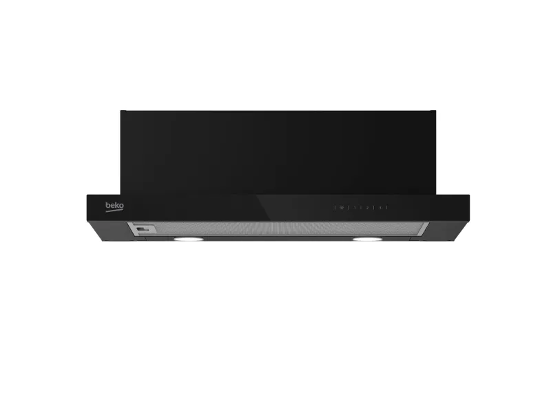 Beko HNT62340B. Maximum extraction power: 366 m³/h, Type of extraction: Ducted/Recirculating, Fluid dynamic efficiency class: D. Type: Built-in, Product colour: Black, Control type: Touch. Grease filter type: Metal, Number of filters: 2 pc(s). Bulb power: 3 W, Number of bulbs: 1 bulb(s). Annual energy consumption: 43.6 kWh, Energy efficiency scale: A++ to E, Power consumption (off): 91 W