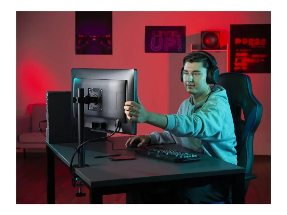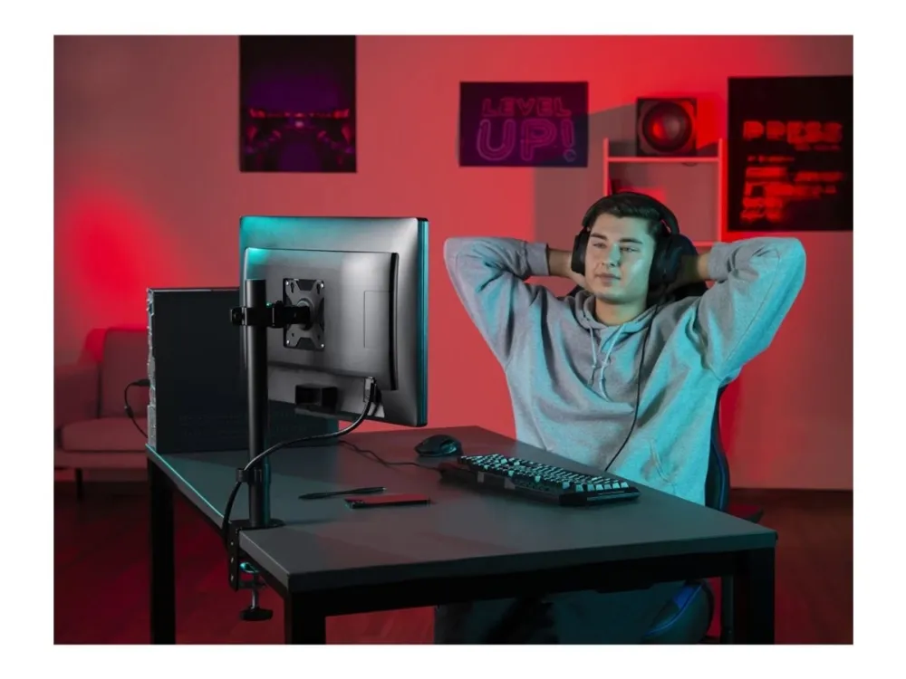 The right chair and desk provide the conditions for a more ergonomic working environment. Not to forget a monitor arm that allows you to have your computer at the right height. It promotes back-friendly working and an ergonomic posture. Improve your user potential with Hama's monitor arm.