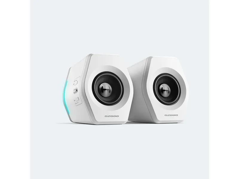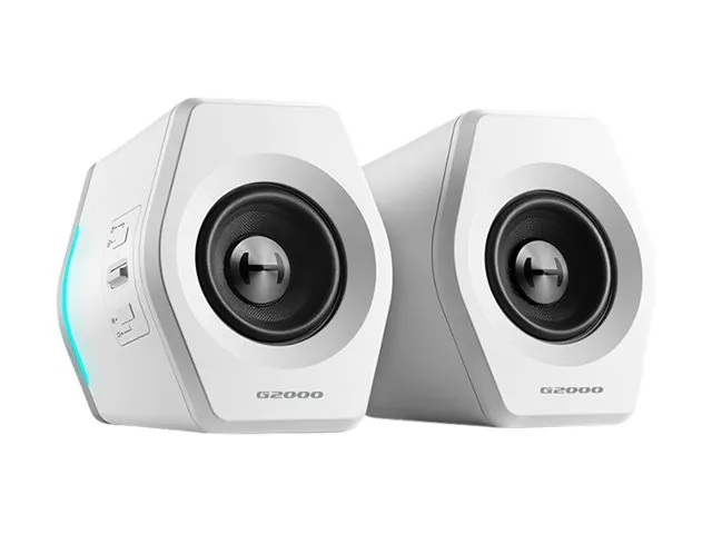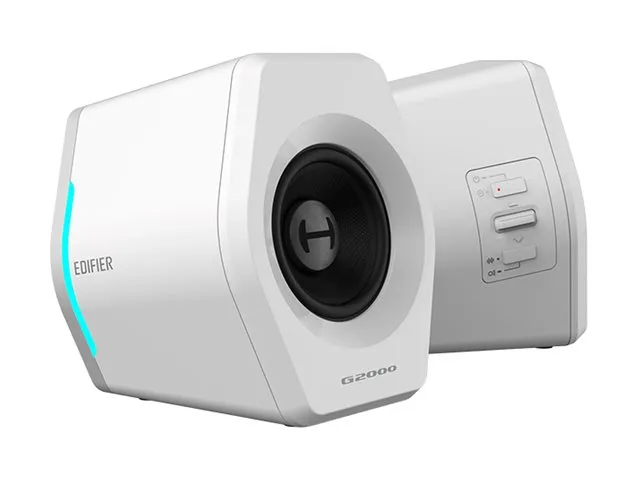 The Edifier HECATE G2000 is a versatile speaker system designed to enhance your audio experience, whether gaming or enjoying music. Featuring dynamic RGB lighting, these speakers deliver sound while adding a visual element to your space. Each speaker is equipped with a 2.75" full-range driver, providing a frequency response that ranges from 98 to 20,000 Hz, ensuring clear audio across a variety of levels. With wired and wireless connectivity options, the G2000 speakers offer flexibility for different setups and preferences. The integrated amplifier delivers a total continuous power of 16 watts, with peak power reaching up to 32 watts, making them suitable for various listening environments. Whether placed on your desk or as part of a larger home audio setup, these speakers promise an engaging auditory experience.