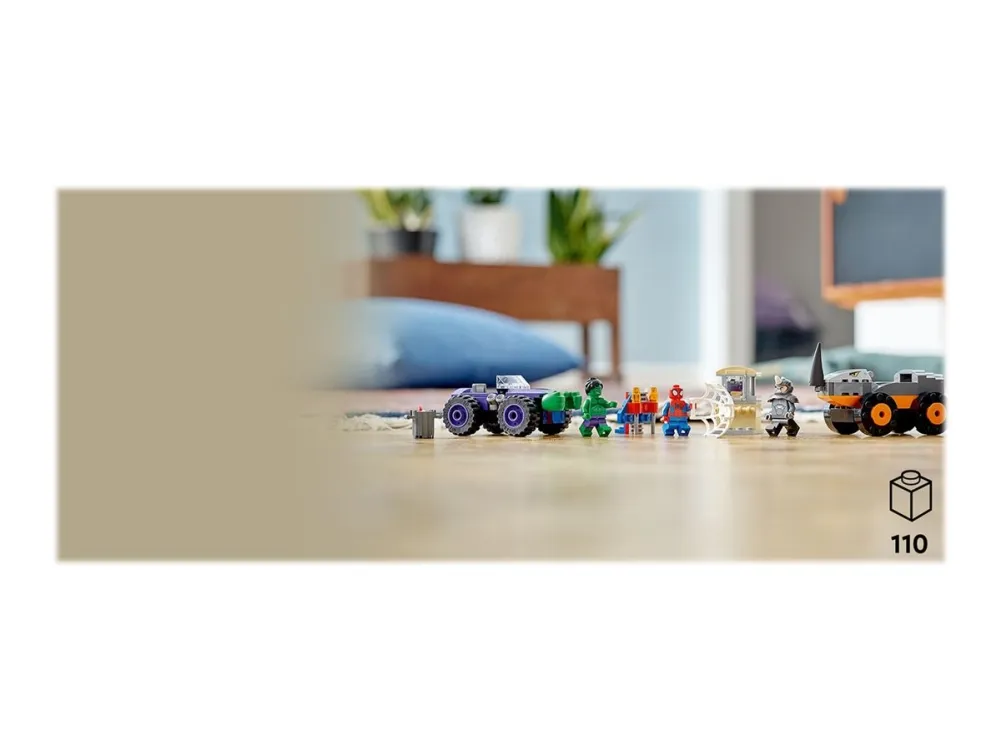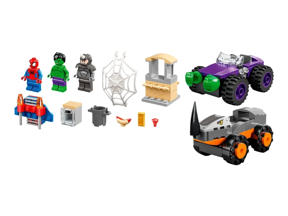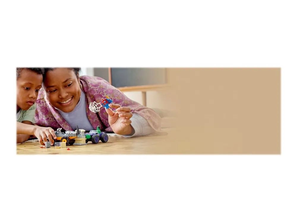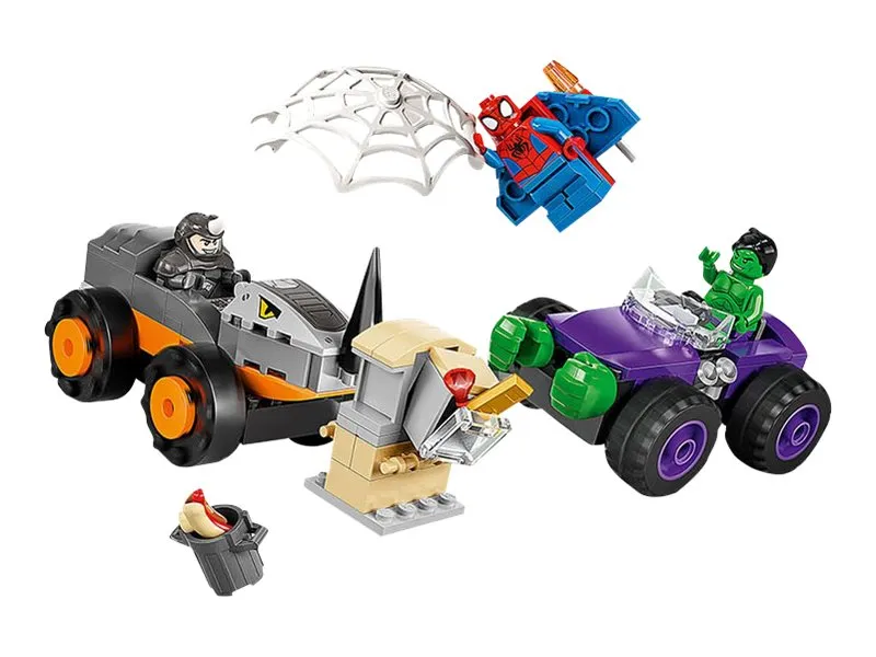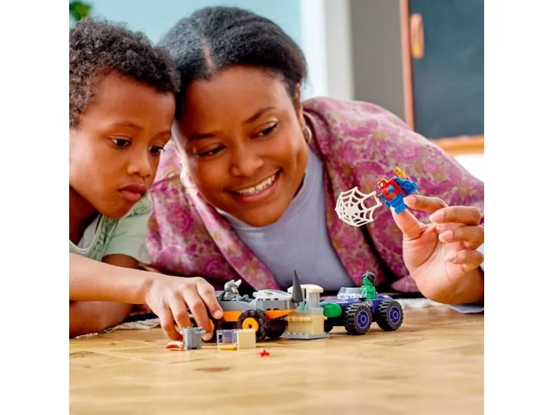 Byggeleken LEGO® Marvel Spidey og de fantastiske vennene hans vs. Oppgjør mellom Hulk og Rhino-truck (10782) setter barn fra fire år og oppover i førersetet mens de kjører rundt for å redde dagen. Barna gjenskaper scener som er inspirert av den populære TV-serien på Disney+, mens de hjelper Spidey og Hulk med å hindre at Rhino raner banken. Barna kommer til å elske kampvognene i dette samleobjektet av et byggbare lekesettet. Hvert monsterkjøretøy inneholder kule detaljer – Rhino sitt kjøretøy har en rambukk, mens Hulk har enorme hender som er klar til å smadre fienden.