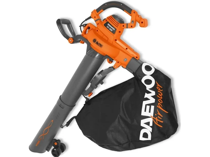 Daewoo DABL 3000E. Type: Handheld blower, Airflow: 870 m³/h, Bag capacity: 35 L. Power: 2400 W. Weight: 4.6 kg
