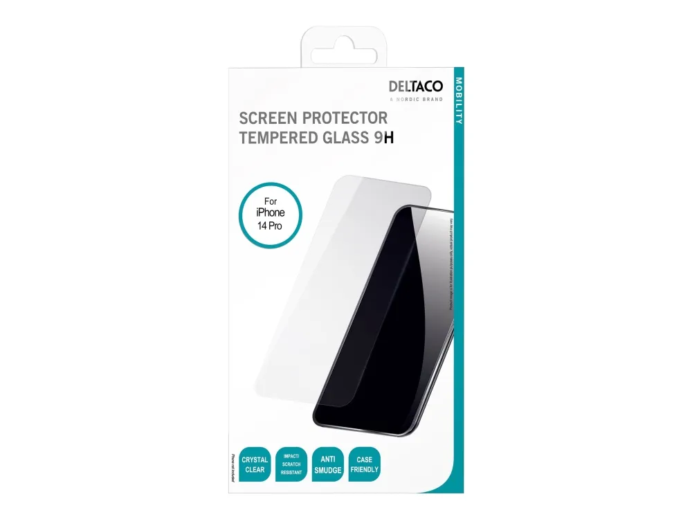 DELTACO - Skjermbeskyttelse for mobiltelefon - 2.5D - glass - krystallklar - for Apple iPhone 14 Pro