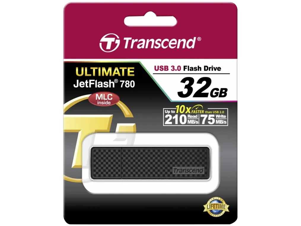 The extremely fast yet fashionable JetFlash 780 is engineered using advanced USB 3.0 technology to ensure unbeatable performance, delivering real-world transfer rates of up to 140 Mbps. Combining ultra high-speed with a sophisticated checkerboard pattern, the JetFlash 780 is truly a statement of elegance that will be appreciated by those who enjoy the finer things in life.
