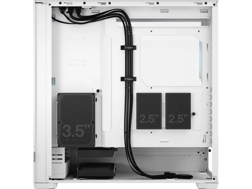 Kabelstyringssystem, støtter 280 mm radiator i topp, PSU-støvfiltre, støtter 140 mm-radiator bak, støtter 360 mm radiator i frontpanel