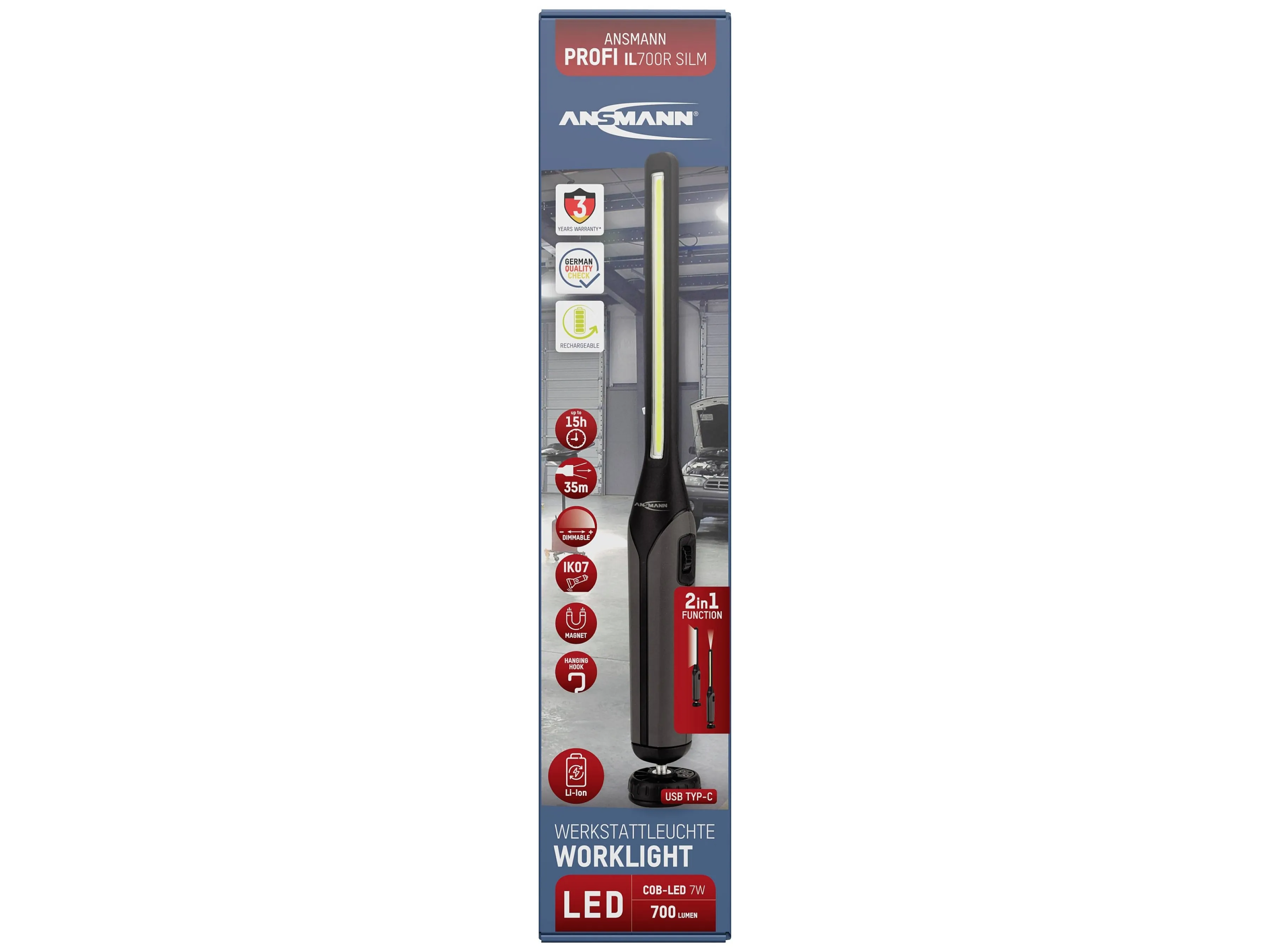 Arbejdslys Inspection IL700R Genopladelig inspektionslygte til professionel anvendelse. Robust plasthus med gummibeklædt gribeflade. 360° drejeligt lampegreb til fleksibel lysorientering. Udklappelig krog, der kan drejes 360°. To holdemagneter på kabinettets bagside og en magnet på undersiden.