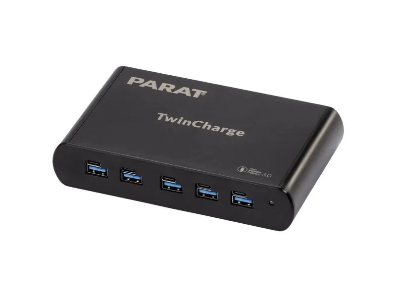 PARAT PARAPROJECT TC5 strømadapter - GaN-teknologi - 5 x USB-C, 5 x 9 pin USB Type A