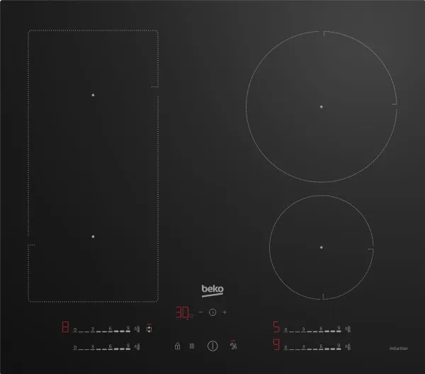 Brand- Beko. Model- HII64730UFT . Width- 59 cm. Depth- 52 cm. Height- 48 cm. Colour- Black. Power- 3600 W. Weight- 10.8 kg. Hob type- Inductive. Number of hobs- 4. Control- Sensoric. Child safety function- Yes. Functions- Connected to Hood. Timer- Yes. Frame- No. Automatic shutdown- Yes. Screen- Yes. Mandatory warranty- 24 mo.