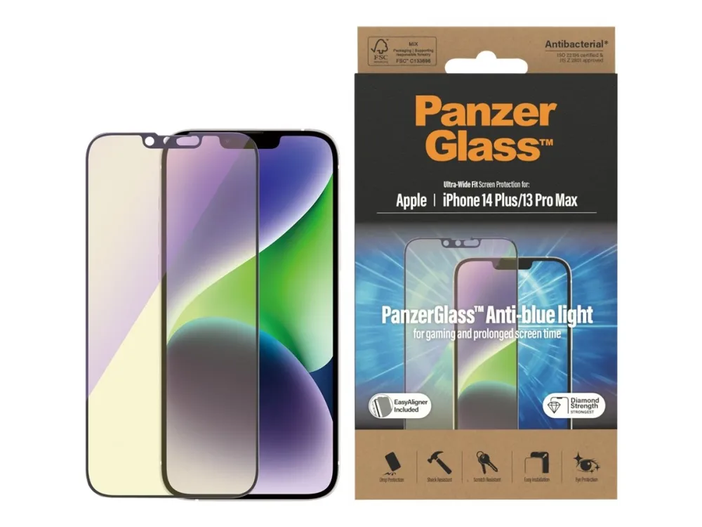 Private messages. Bank details. Pin codes. With this screen protector from PanzerGlass , your secrets are safe from the prying eyes of people sitting next to you on the train, on the bus or in the office. The specially designed privacy filter renders the content of your screen virtually invisible to everyone except you.Accidental bumps against sharp-edged dangers in your pocket or crushing falls onto stone-hard pavements are also no match for this scratch and shock-resistant screen protector, which provides high-level drop protection. It even has a smudge-free coating with antibacterial effect that reduces traces of fingerprints and kills up to 99.99% of all common surface bacteria.The screen protector comes with an EasyAligner that makes installation so simple you can do it perfectly on the first attempt… even if you're all thumbs. And once it's installed, you'll never again fear the sight of your phone tumbling to the ground. This may not happen, but if it does, you'll regret not having clicked "add to cart".The Ultra-Wide Fit screen protector covers the entire front surface of your phone, while still leaving room for a case. It provides a complete and crystal-clear view of your screen and comes in FSC-certified packaging that can be recycled.