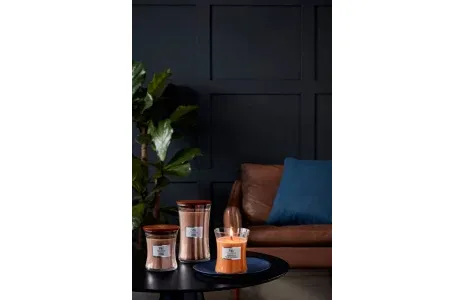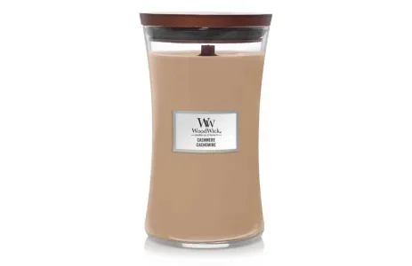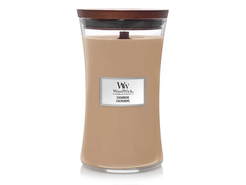 WoodWick® duftlys med den patenterede karakteristiske trævæge, sofistikerede dufte og eksklusive, stilrene design skaber øjeblikke af luksus og forkæler sanserne med bløde lyde af en knitrende ild. WoodWick® duftlys har et rent, moderne design med raffineret stil og elegante former. Hvert WoodWick® lys har komplekse, sofistikerede dufte, som er nøje udvalgt og testet. Alle lys leveres med et flot trælåg og smukke etiketter. Produceret af en eksklusiv blanding af soja og paraffinvoks. Cashmere: En uventet kombination af duftnoter - herunder sandeltræ, tonkabønne og kvæde - blandes for at skabe en overdådig, overbevisende duft. Topnote: Kvæde, pære, rød frugt, iset ingefær Mellemnote: Orris, pink peber, sorttorn, brombær Bundnote: Sandeltræ, cedertræ, tonkabønne Brændetid: Large 180 timer. Vægt: 610g. Vægt inkl. glas: 1.120g.