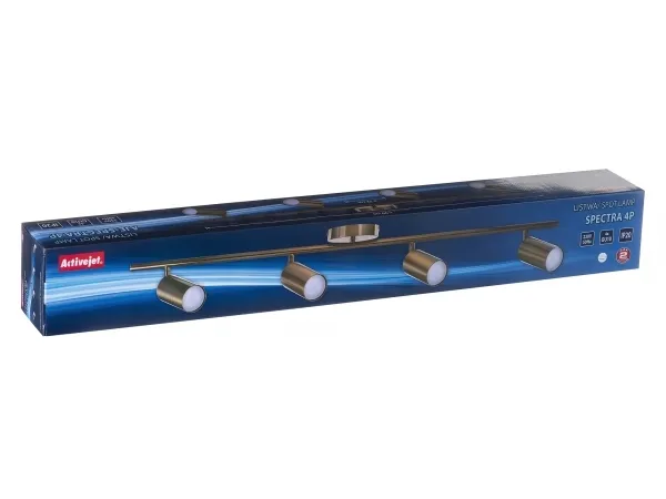 Activejet offers a variety of bowl lighting fixtures, which are a perfect way to add unique character to every interior. The abundance of types of lighting accessories we offer provides lots of room for your creativity and enables an infinite number of interior design solutions. At the same time, our products are extremely easy to install can help you reduce the energy consumption of your home, hotel, restaurant or public area. Activejet lighting products have already won recognition both in Poland and worldwide.Activejet quadruple gold ceiling wall lamp SPECTRA strip spotlight GU10 for living room. Mounting type: Recessed, Shape: Cylinder. Number of bulbs: 4 bulb(s), Fitting/cap type: GU10. International Protection (IP) code: IP20, Suitable for indoor use, Product colour: Gold