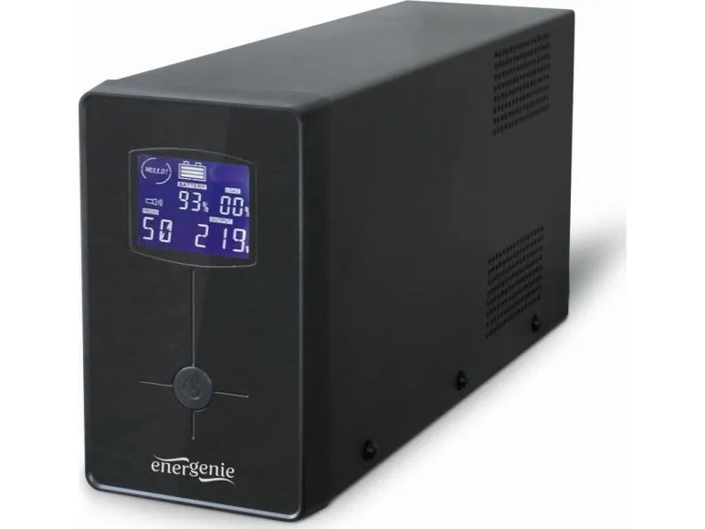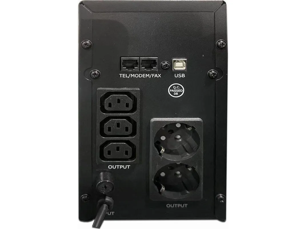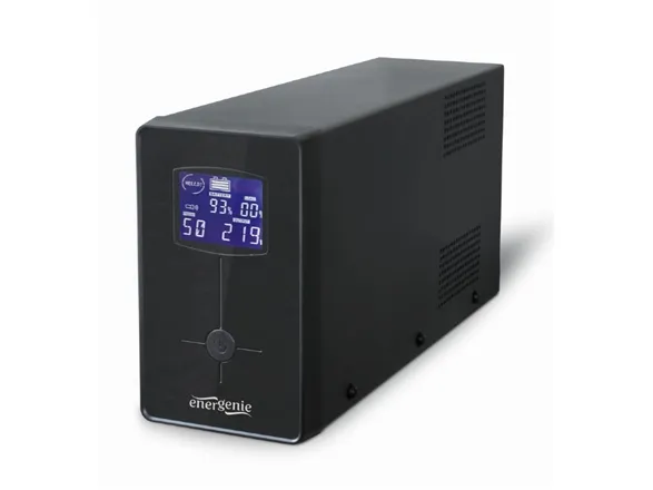 Kenmerken: Uninterruptable 2000 VA power supply for PC’s Automatic output voltage regulation (AVR) USB interface LCD status indication Short circuit protection Overload, surge, spike and lightning protection Audible and visual alarms Overcharge and overdischarge protection Including practical UPS Management software Specificaties: Type: line interactive Waveform: sine wave (AC mains), modified (square) sine wave (battery) Input: 220 V AC ± 25% (162-295V), 50 / 60 Hz ± 10% Output: 220 V AC ± 10%, 50 / 60 Hz ± 1% (220 V AC ± 10 % at inverter mode) Switching time: less than 10 ms Backup time: 8...20 mins (depends on the load) Battery: sealed lead-acid 12 V DC / 9 Ah x 2 pcs(connected in series) Charge time: up to 90% after 6-8 hours Sockets: built-in input cable, 3 pcs x C13 output, 2 pcs x german Shuko output Interface communication: USB-BF socket, RJ45 Operating conditions: 0°C ~ 40°C, at humidity 20 ~ 90 %RH non condensing Power: 2000 VA (1200 W) Charging current: 0.5 A (default) Noise: < 45 dB at 1 m distance Dimensions: 125 x 380 x 225 mm Net weight: 12.9 kg ''Cold-start'' function Systemeisen: Software is compatible with Windows Vista, Windows 7/8/10/11, Windows 2008 server