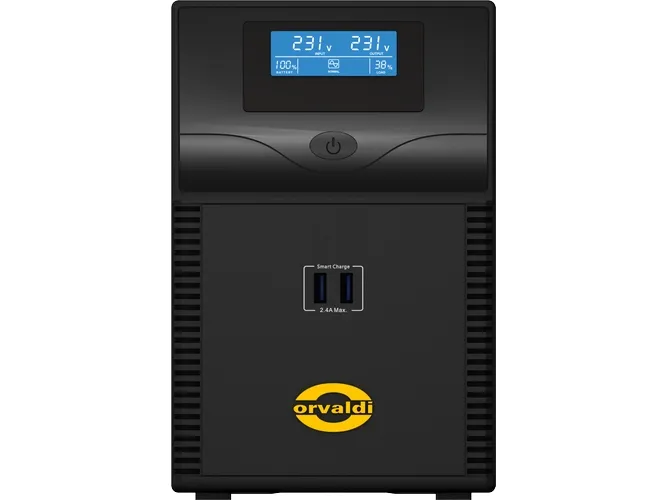 Orvaldi ID1K0CH. UPS topology: Line-Interactive, Output power capacity: 1 kVA, Output power: 600 W. Battery capacity: 24 Ah, Battery voltage: 7 V. Form factor: Compact, Product colour: Black, Display type: LCD. Width: 135 mm, Depth: 343 mm, Height: 208 mm