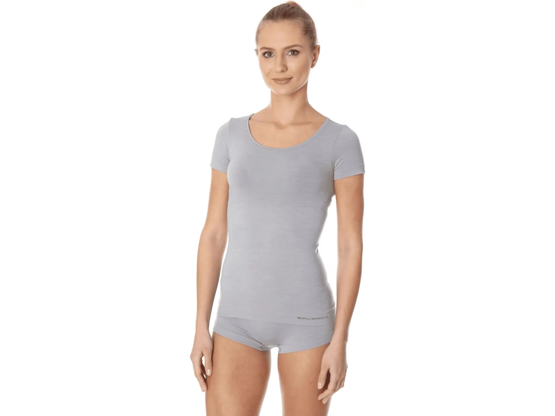 Brubeck SS11020 T-skjorte for kvinner med korte ermer COMFORT WOOL grå XL