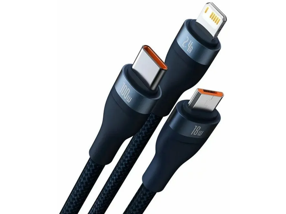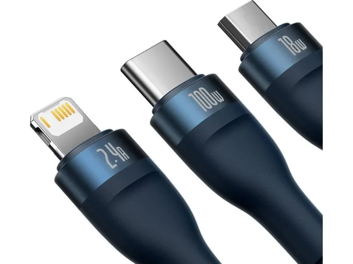 Baseus CASS030003. Cable length: 1.2 m, Connector 1: USB A, Connector 2: USB C/Micro USB-A/Lightning, Product colour: Blue