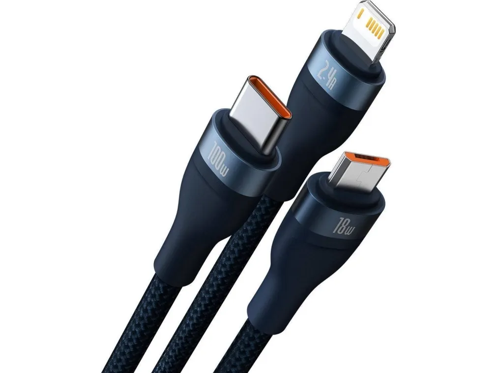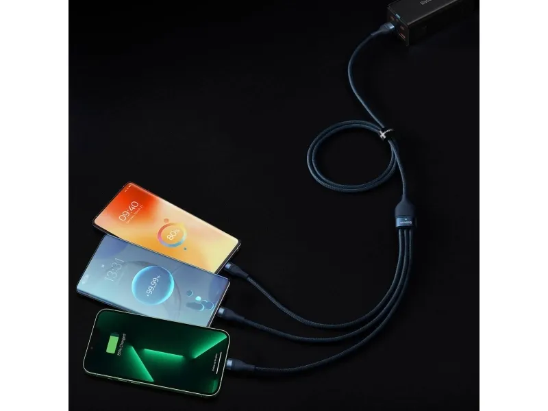 Baseus CASS030003, 1,2 m, USB A, USB C/Micro USB-A/Lightning, Blå