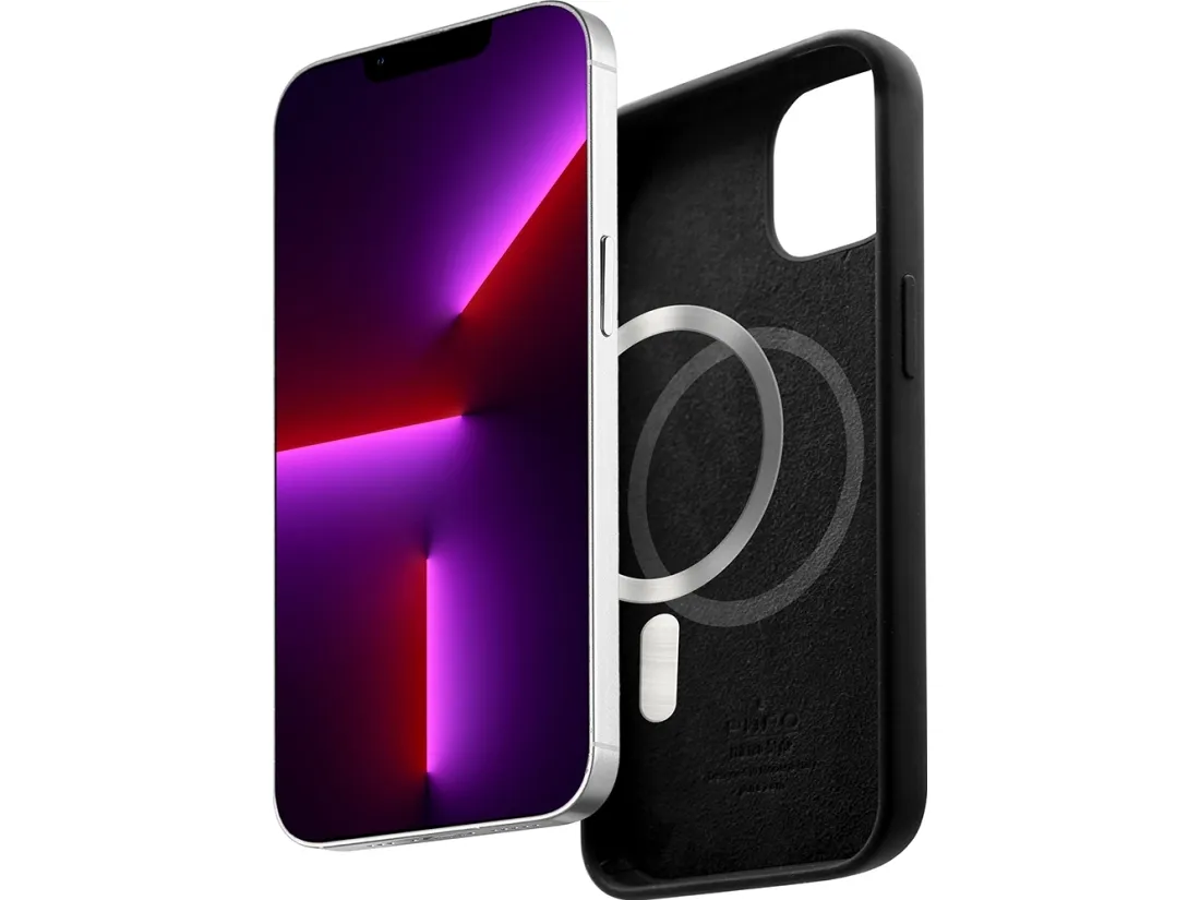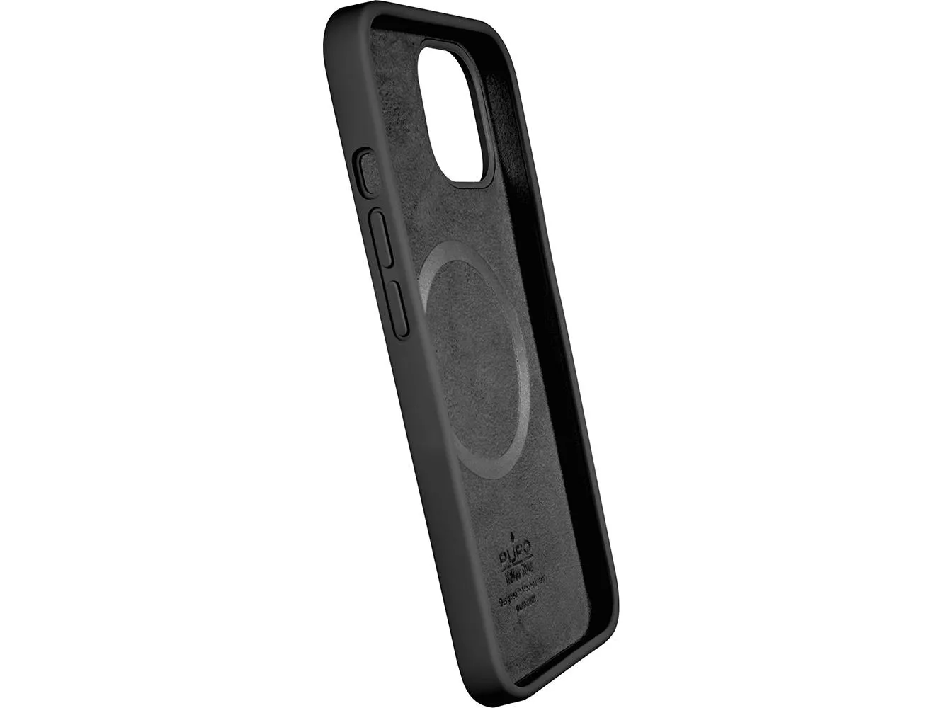 The Puro Icon Mag protective cover is designed to provide safety and style for your cell phone. Crafted from liquid silicone, this flexible back cover features built-in magnets that ensure a secure fit while allowing for easy attachment to MagSafe accessories. With a soft touch feel, this case protects against scratches and enhances the grip on your device. The raised camera bezel offers additional protection for your phone's camera, while wireless charging support ensures that your device remains charged without the hassle of removing the case.