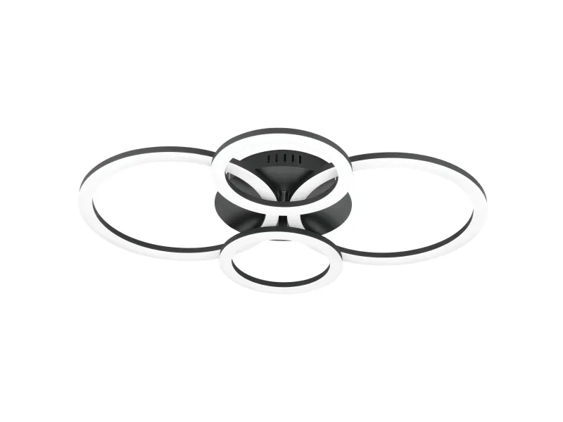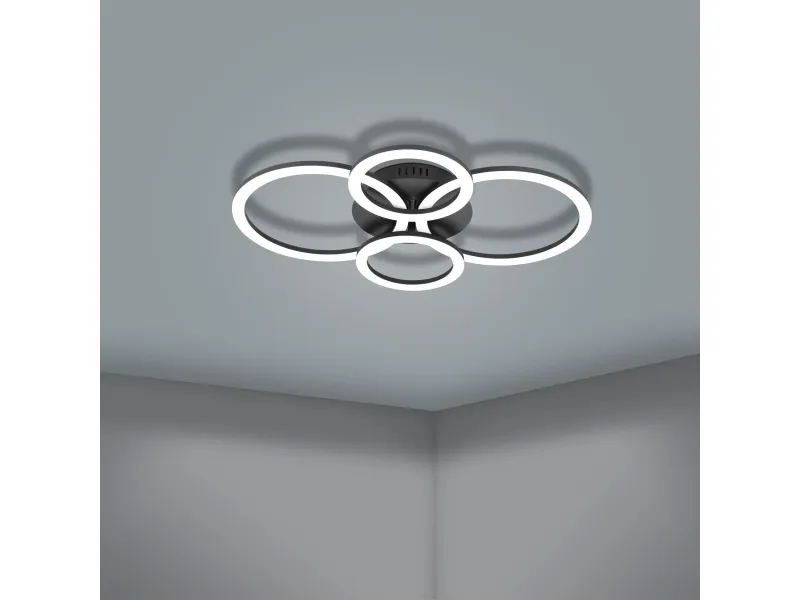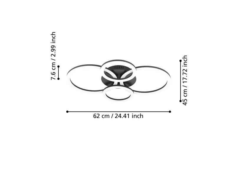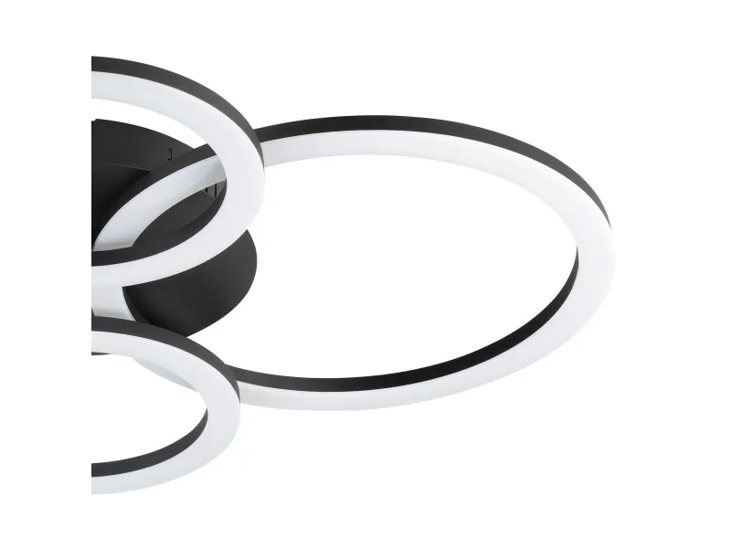 EGLO CONNECT-Z PARRAPOS-Z loftlampe i sort. Højde 8 cm, længde 61,5 cm, bredde 45 cm. LED, 41 watt, 5800 lumen, 3000-6500 kelvin, Tunable white. Lampen kan dæmpes og styres med fjernbetjening (medfølger ikke), via AwoX Home Control app (gratis), eller ved stemmestyring. Zigbee er kompatibel med Amazon Alexa og Google Assistent. IP20. Dette produkt indeholder en lyskilde med energieffektivitetsklasse: E.