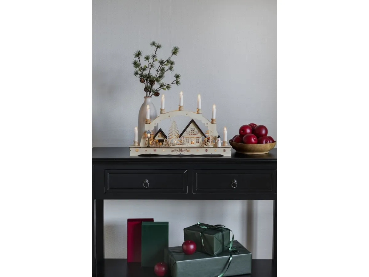 Træsilhouet Med afbryder At de bakker, tænder stearinlys og hygge sig - og så er julens tid til små og store med alle dine skikke og traditioner en helt særlig fortrylning. Den årlige opstilling af disse LED træsilhuet af høj kvalitet i form af et julet bindingsværk kunne i fremtiden høre med til et fast ritual. Med sin kærlige og filigrante udarbejdelse fortæller den historien om sin egen lille juleverden. Was in, in-ger-vindues 4 varm-hvide dioder drives med 2 AA-batterier. Det giver dig mulighed for en fleksibel anvendelse på ethvert yndlingssted. En dejlig adventsdekoration, som store og små kan have stor glæde af - og det er år efter år, for med dette kvalitetsprodukt fra firmaet Konstsmide får du både æstetik og lang levetid.