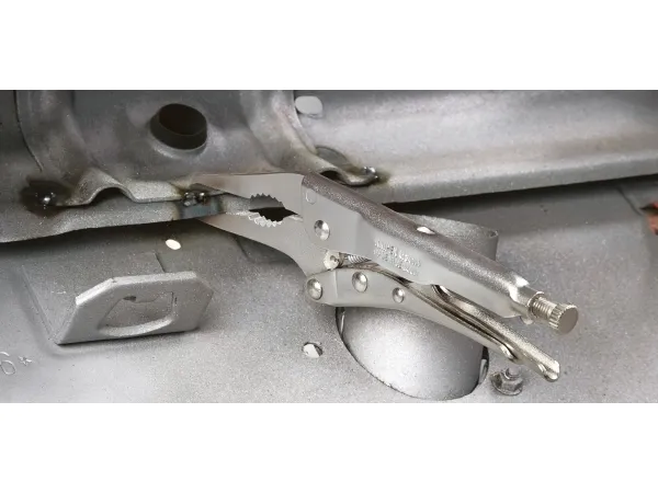 Holder rundt og fladt materiale samt profilmateriale sikkert. Meget belastbar. Med stilleskrue og løsnehåndtag. Enhåndsbetjening. Højt spændetryk pga. knæstangsudveksling. langnæb-griptang, smalle, lange kæber.