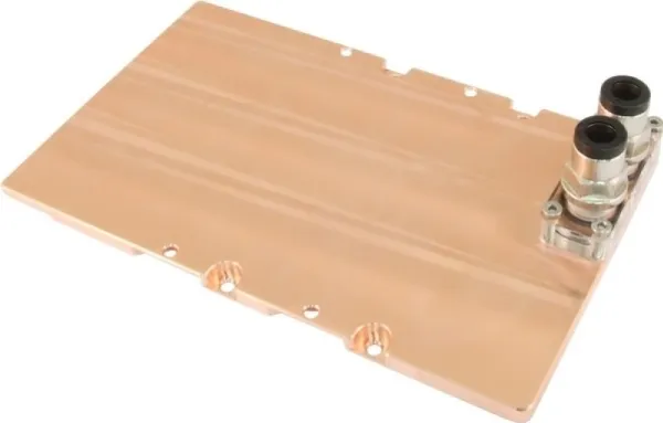 The aquadrive micro is a harddrive cooler which is mounted on the harddrive from underneath. Thereby it is possible to install the hard drive with the water block into common 3,5 mounting bays. The cooler is milled out of copper and closed via a stainless steel plate. The new copper version can be used to cool up to two hard drives (2x SATA or 1x SATA and 1x IDE/PATA).\nCommon hard drive screws are needed for the mounting (not included in delivery). Threads are G1/4, fittings are not included in delivery.