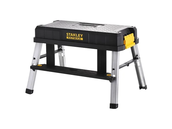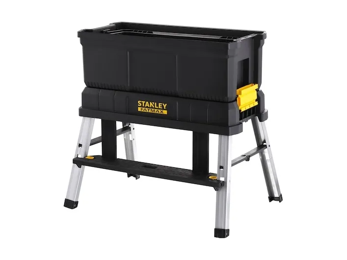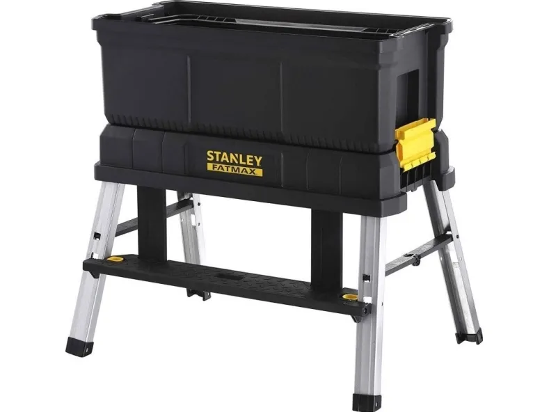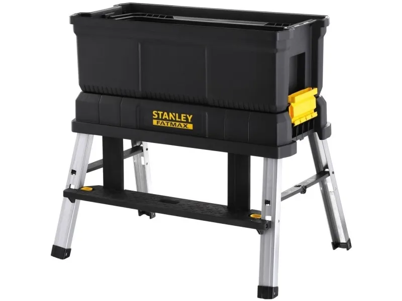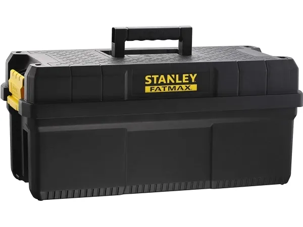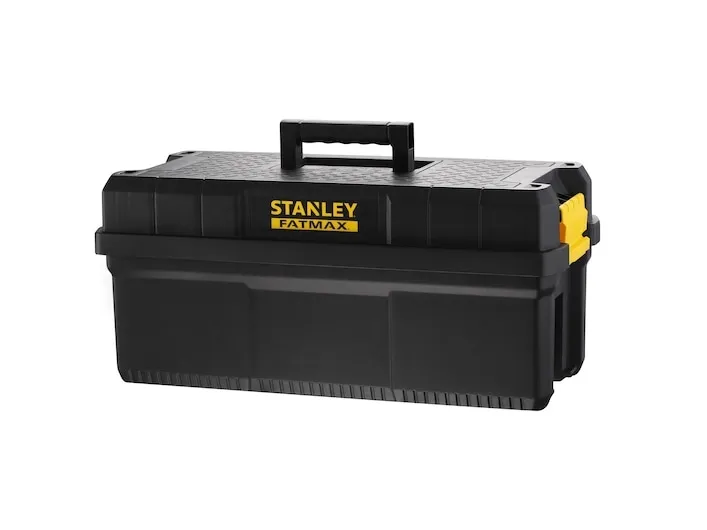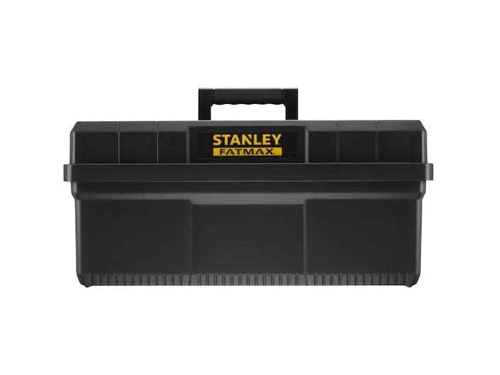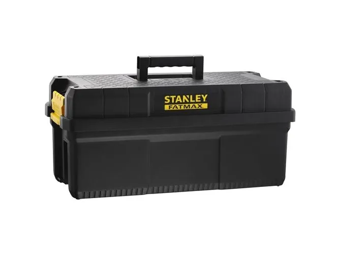 FATMAX værktøjskasse med trin Meget stor, rummelig box FatMax-Logo indgraveret på forsiden Bær over 3/4 af længden på Boxen - også mulighed for opbevaring af pladskrævende værktøjer Udsparing i låg til bearbejdning af emner Rummeligt metalkorpus Ergonomisk tokomponent-greb Mulighed for lukning med hængelås Stor, rustfri lukning Innovativ mulighed for lodret opbevaring af værktøj. Stanley FMST81083-1 FATMAX værktøjskasse med træder