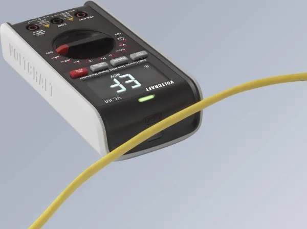 Pålidelige måleresultater med fabrikskalibrering I forbindelse med kvalitetssikringen bliver der ved produktionen af alle VOLTCRAFT®-måleapparater udført en kalibrering efter fabriksstandard. Dette garanterer den høje kvalitet og overholdelse af tolerancegrænserne som angivet i de tekniske specifikationer i brugervejledningen. Et certifikat bliver herved ikke oprettet. CAT III 600 V 6000 trin True RMS Automatisk områdevalg Lommelygtefunktion og displaybelysning Berøringsfri spændingskontrol 600 V højeffektsikringer