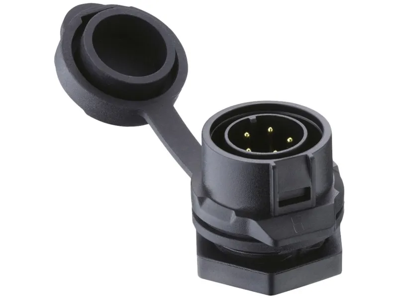 Indbygningsstikforbinder 2430 03 T18CB100 QuickLock-indbygningsstik IP67 Størrelse 16 Lige udformning Med plastkabinet Loddetilslutninger og beskyttelseskappe (IP65)