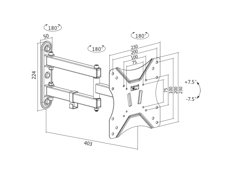 LogiLink BP0008, 58,4 cm (23"), 106,7 cm (42"), 75 x 75 mm, 200 x 200 mm, 7,5 - 7,5°, Sort