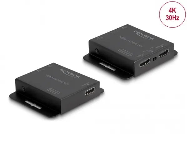 Delock's HDMI extender set is designed to enhance your audio and video experience by supporting high-definition resolutions up to 3840 x 2160 at 30 Hz. This set includes both a transmitter and receiver, offering versatile connectivity options through HDMI, RJ-45, and IR inputs/outputs. It's perfect for users looking to extend their HDMI signal over long distances, with a maximum transfer distance of 70 m over CAT 6 cables.