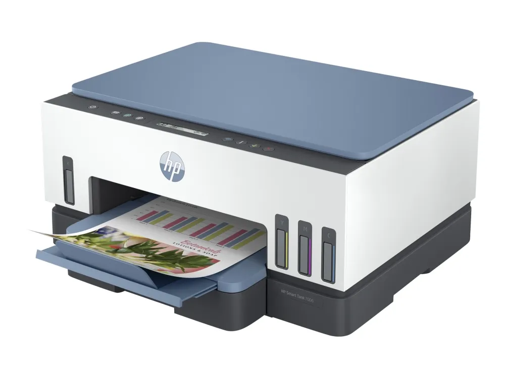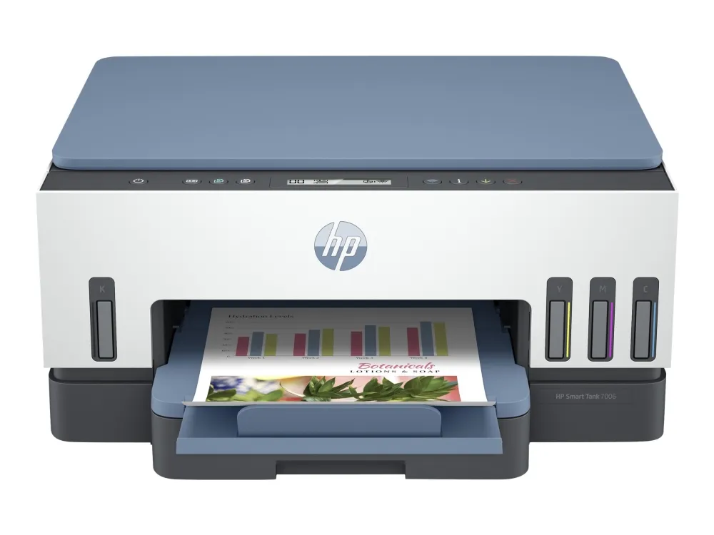 HP Smart Tank 7006 All-in-One - Multifunksjonsskriver - farge - ink-jet - påfyllbar - 216 x 297 mm (original) - A4/Legal (medie) - opp til 13 spm (kopiering) - opp til 15 spm (trykking) - 250 ark - USB 2.0, Wi-Fi(ac), Bluetooth