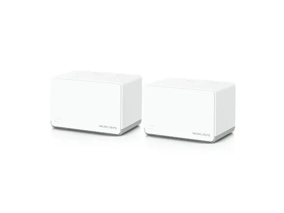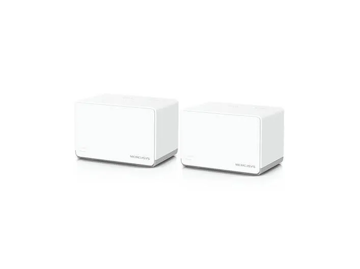 Easily Extend Your Coverage The Halo Whole Home WiFi kit includes multiple units to fit any house type. If that’s not enough, you can expand Mesh WiFi coverage anytime by simply adding more Halos.Mercusys HALO H70X (2-PACK). Product colour: White, Antenna type: Internal, Product type: Mesh system. Wi-Fi band: Dual-band (2.4 GHz / 5 GHz), Top Wi-Fi standard: Wi-Fi 6 (802.11ax), Wi-Fi standards: 802.11a, 802.11b, 802.11g, Wi-Fi 4 (802.11n), Wi-Fi 5 (802.11ac), Wi-Fi 6 (802.11ax). Firewall security: SPI Firewall. Width: 128 mm, Depth: 81 mm, Height: 83.7 mm. Number of products included: 2 pc(s), Number of units included: 2 pc(s)
