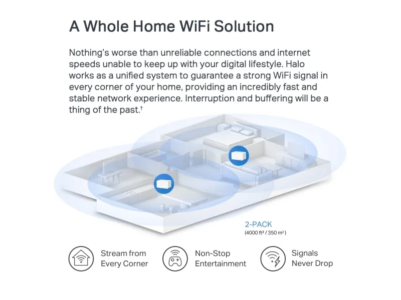 True Seamless Roaming with One Unified Network The Halo system automatically connects your phones or tablets to the fastest node, delivering a truly seamless network experience. No more sudden signal drops or lagging WiFi when you’re walking around the house.