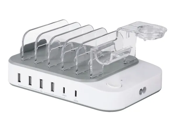 DELTACO DPS-0203 ladestasjon - 4 x USB, 2 x USB-C - 50 watt